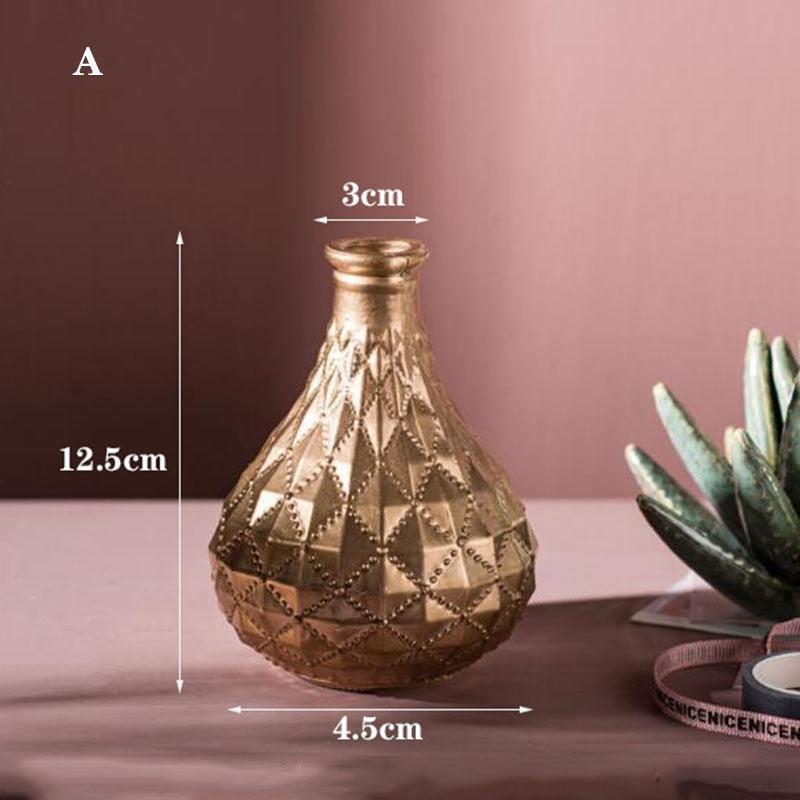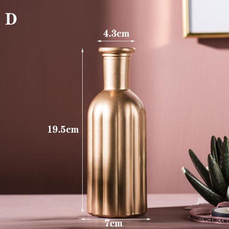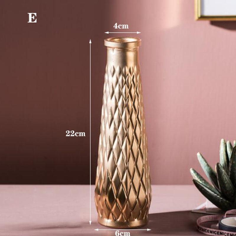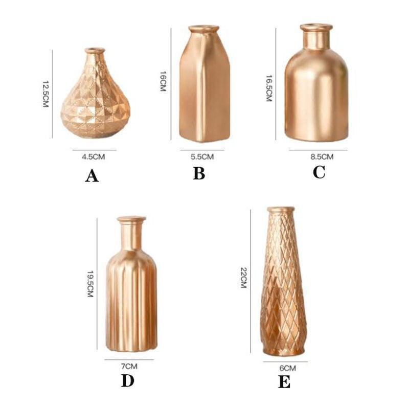 집이나 결혼식 장식을 새로운 차원으로 끌어올릴 세련된 작품인 현대 유럽 황금 유리 꽃병을 소개합니다. 우아함을 염두에 두고 제작된 이 전기 도금된 황금 꽃병은 꽃, 꽃봉오리, 식물을 스타일있게 전시하기 위한 완벽한 선택입니다.