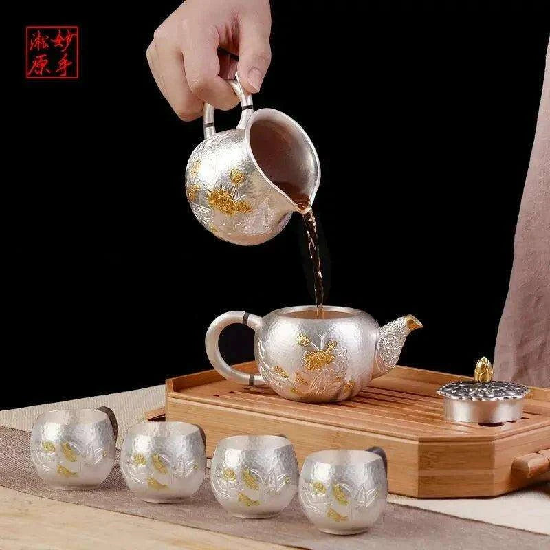 Exquisite Handcrafted Silver Kung Fu Tea Set