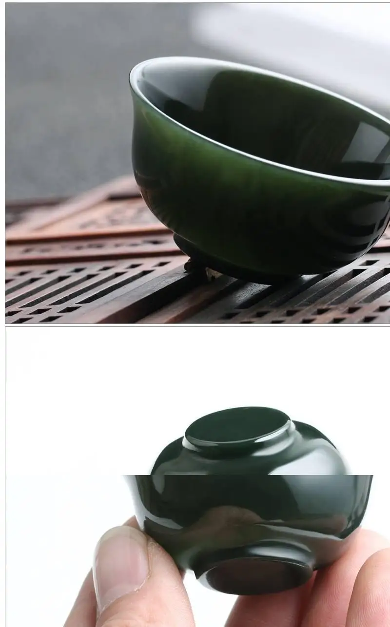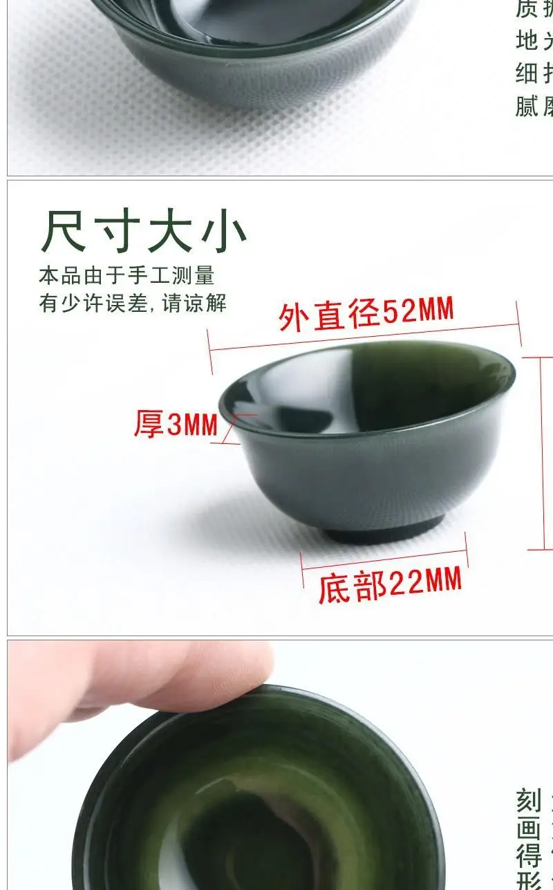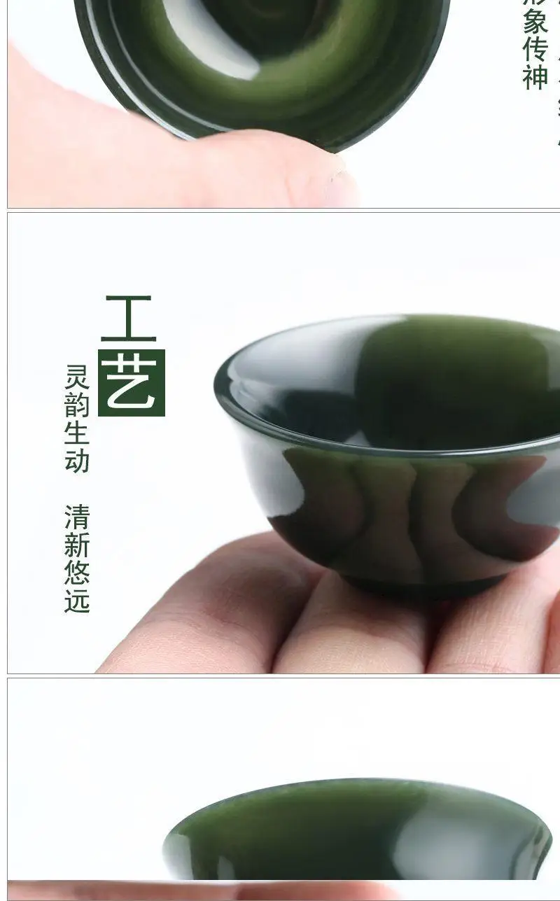 천연 녹색 옥 찻잔 건강 Gongfu Teaware 정품 Hetian 연옥 옥 돌 차 그릇 다도 마스터 컵