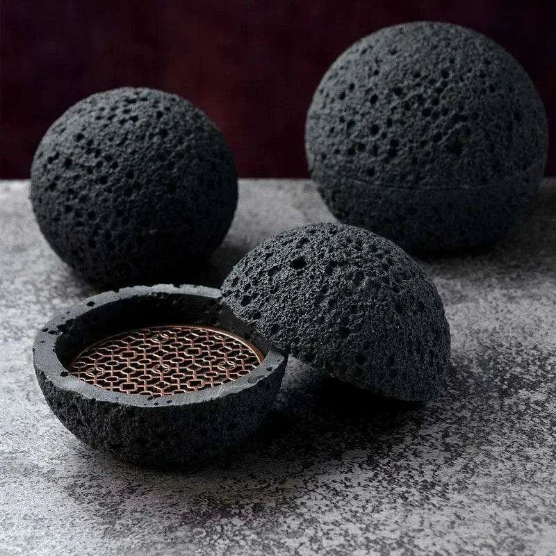 Exquisite Smoked Black Volcanic Stone Bowl Set for Gourmet Enthusiasts