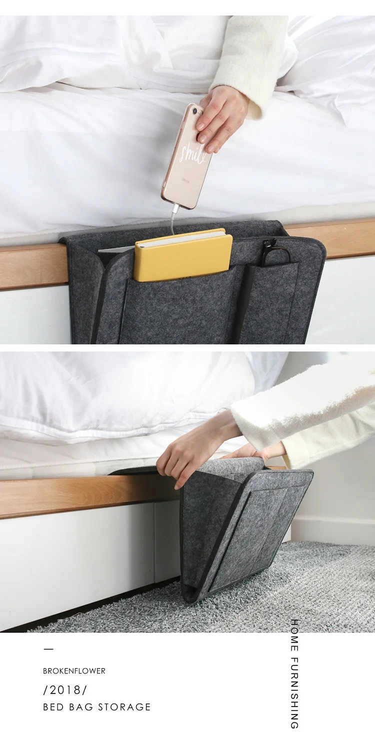 Felt Bedside Storage Bag은 필수품을 정리하고 손이 닿는 곳에 보관할 수 있는 완벽한 솔루션입니다. 내구성이 뛰어나고 스타일리시한 디자인으로 모든 공간에 우아함을 더합니다. 여러 개의 주머니가 있어 리모컨, 전화, 안경 및 기타 항목을 보관할 수 있는 충분한 공간을 제공합니다. 가볍고 휴대가 간편한 디자인으로 어디를 가든 쉽게 휴대할 수 있습니다. 침대에서 휴식을 취하든 소파에서 휴식을 취하든 이 수납 가방은 집에 꼭 필요한 아이템입니다.