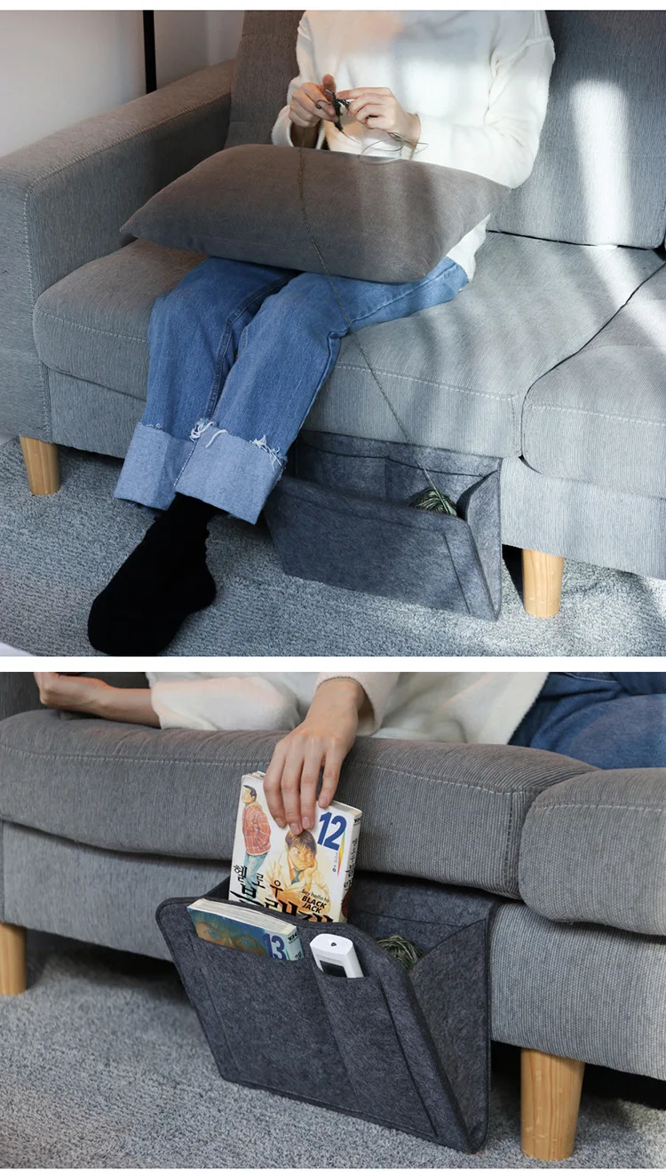 펠트 침대 옆 수납 가방 - 소파, 침대, 책상용 파우치 - 리모컨 홀더, 정리함