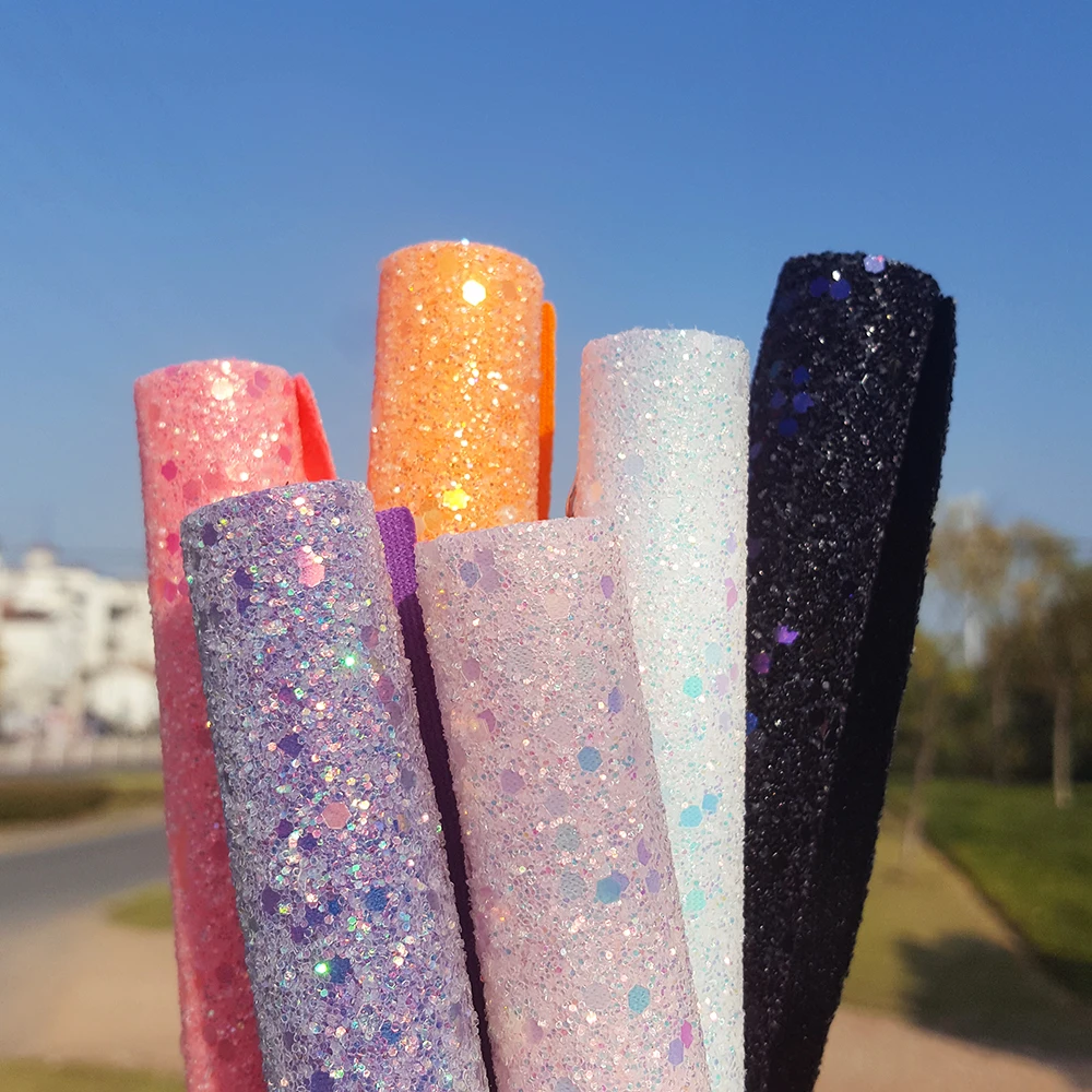 QIBU 22*30cm Chunky 반짝이 패브릭 A4 크기 합성 가죽 크리스마스 파티 장식 DIY Hairbow 귀걸이 가방 액세서리