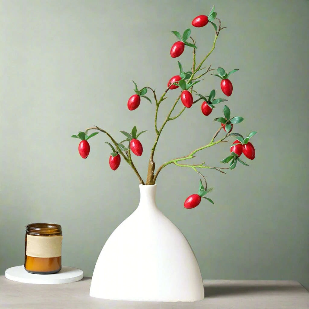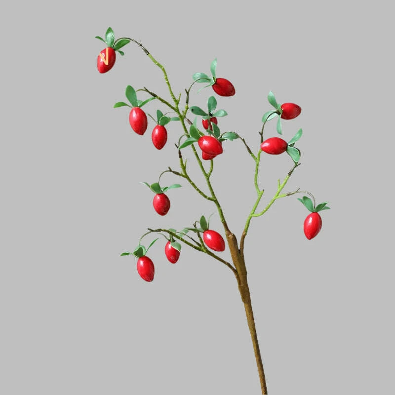 Festive Red Pomegranate Floral Branch with Lush Greenery