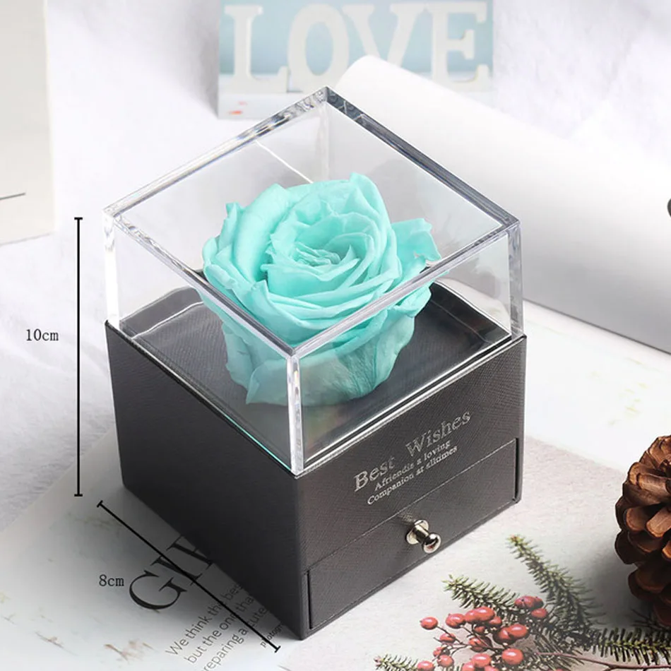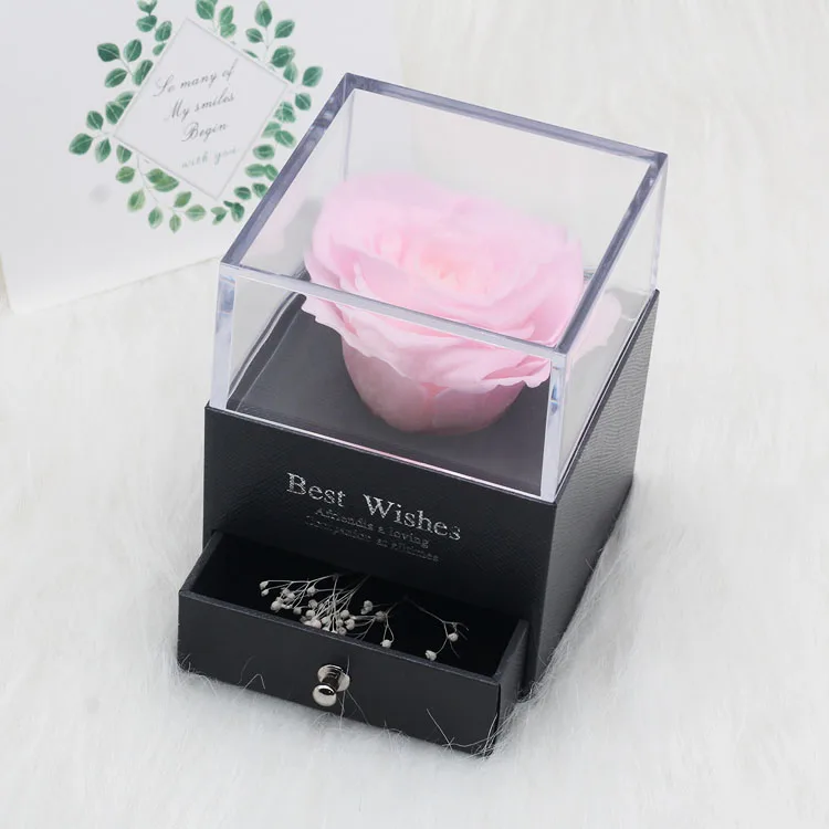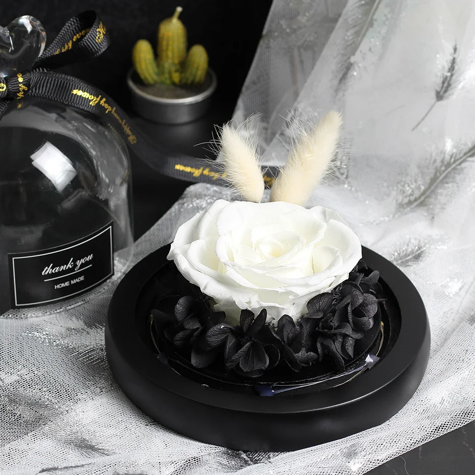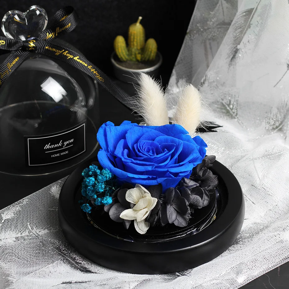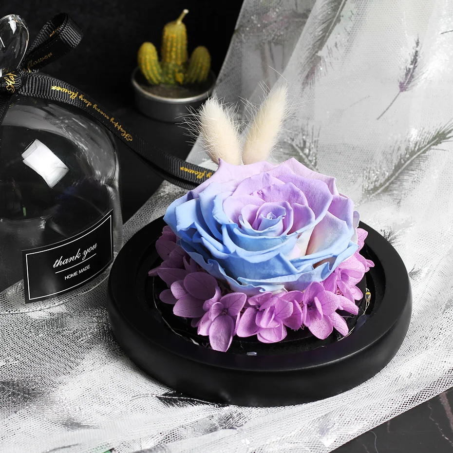 조명이 있는 독특한 유리 돔 장미 리얼 로즈와 뷰티 비스트 프리저브드 로즈 발렌타인 데이 선물