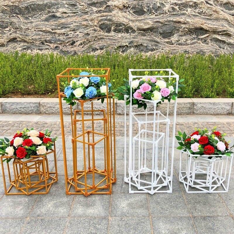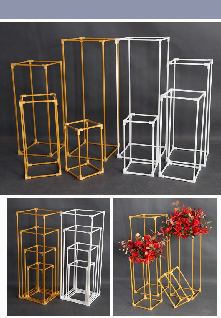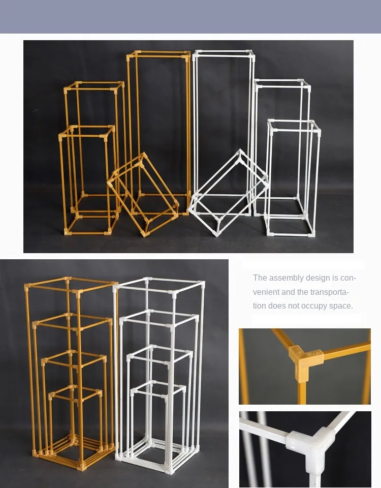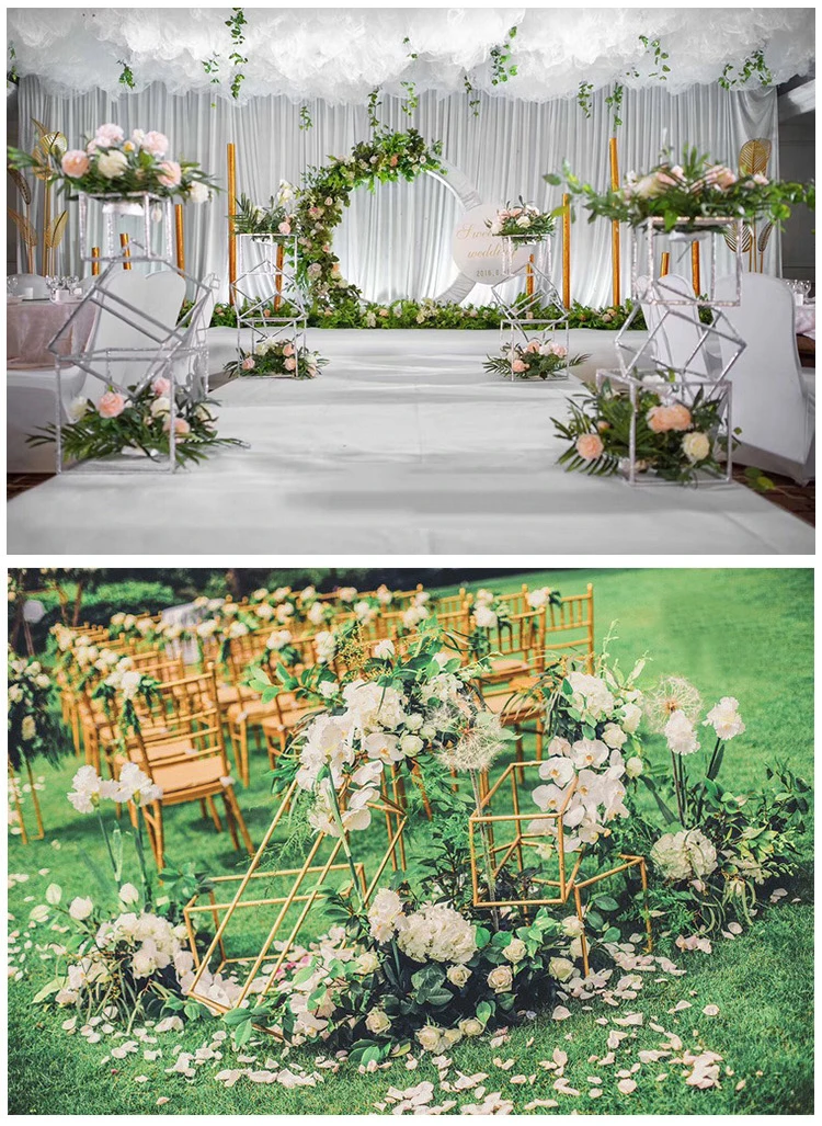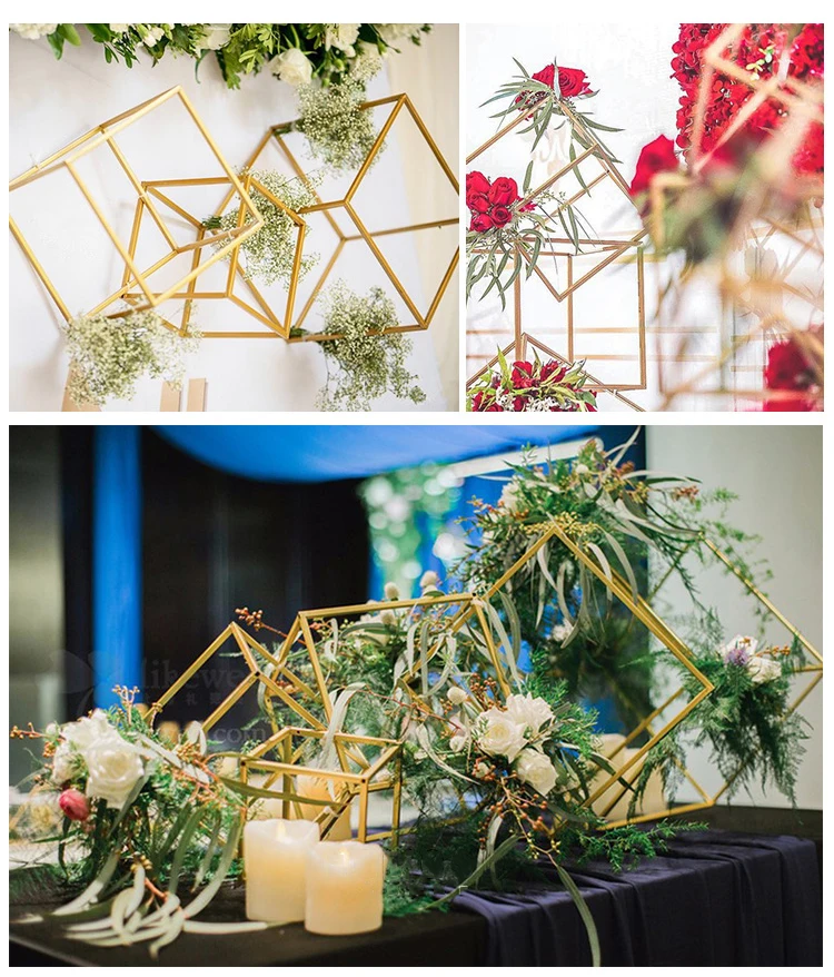 - 우아한 기하학적 모양: 현대적이고 세련된 이 센터피스 스탠드는 손님의 마음을 사로잡을 멋진 작품입니다.