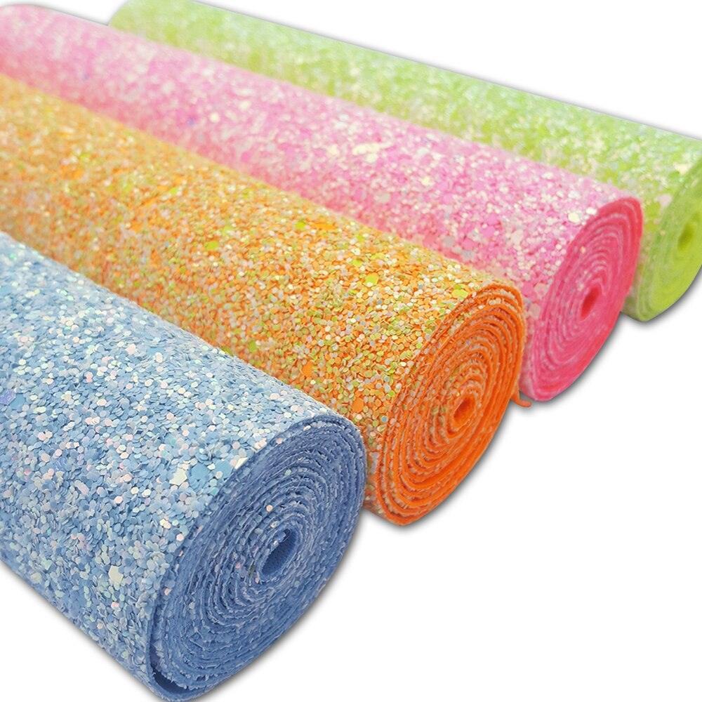 컬러풀한 청키 글리터 패브릭 롤 합성 가죽으로 공예품에 반짝임과 세련미를 더해보세요. 평범한 아이템을 특별한 아이템으로 손쉽게 강화해보세요!