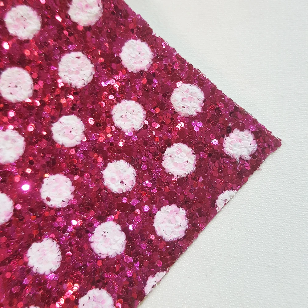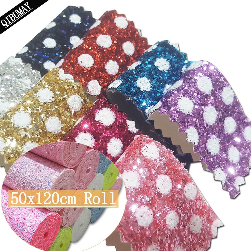 QIBU 50x120cm 도트 패턴 Chunky 반짝이 패브릭 Yrad 솔리드 컬러 인조 가죽 롤 비닐 활 공예 재료