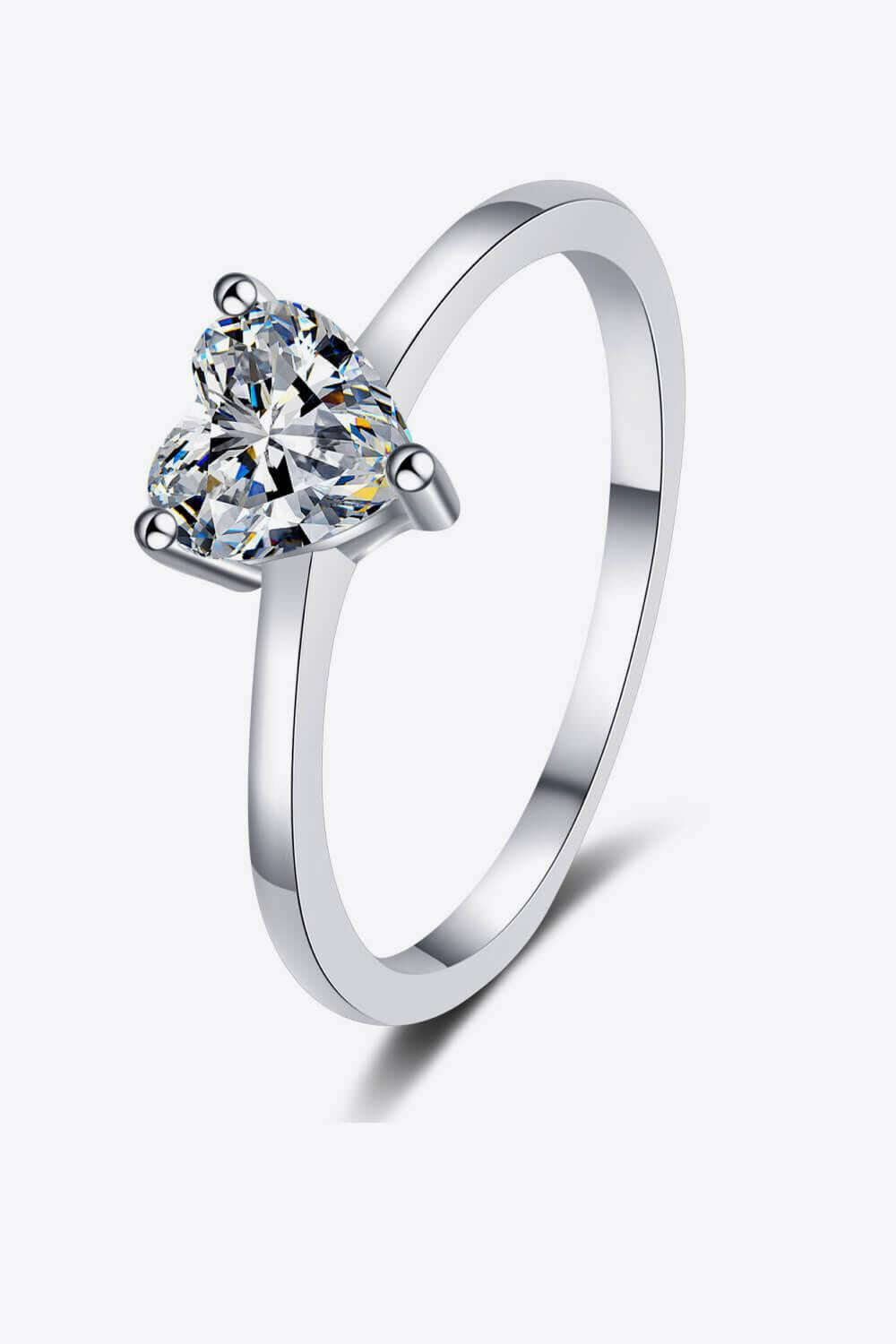 925 스털링 실버 하트 모양의 모아사니트 솔리테어 링