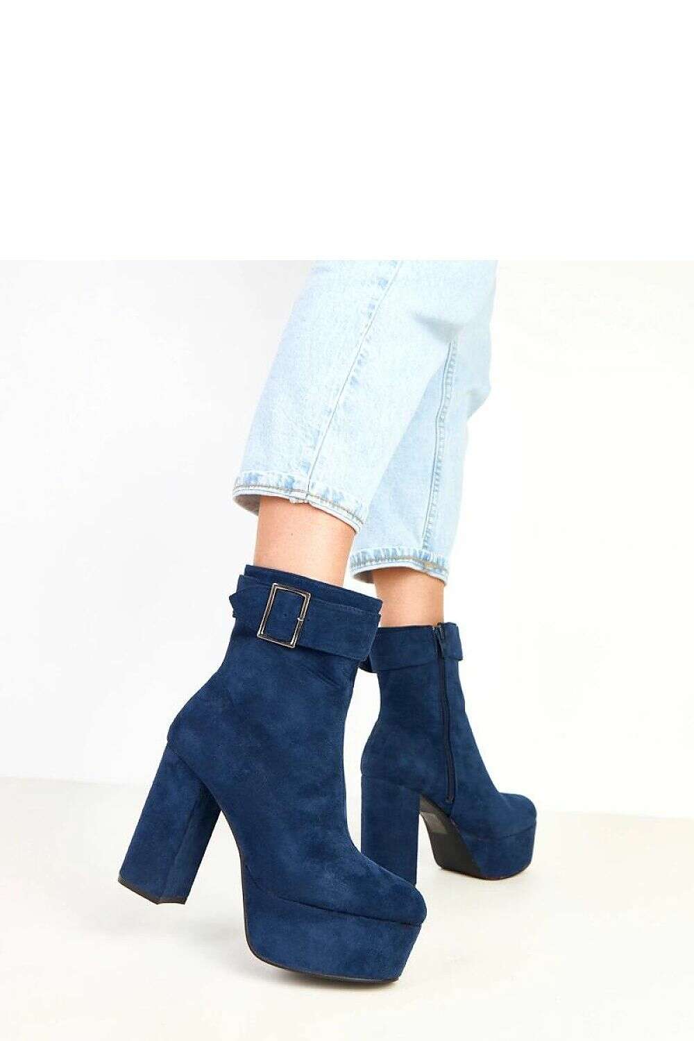 Stylish women's ankle boots made of soft ecological suede leather, distinguished by a decorative buckle at the top of the shaft, adding elegance and character. The model has a round toe, a 12-centimeter pillar heel and a 4.5-centimeter platform, ensuring comfort and stability when walking. The 17 cm high shaft subtly envelops the foot, and the practical zip closure makes it easy to put on. The interior is finished with fabric, and the lack of insulation makes the boots perfect for the transitional season. This fashionable and elegant model perfectly complements both everyday and more formal stylizations.