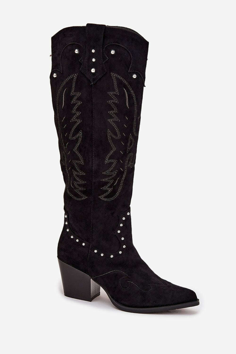 Step into Western-inspired elegance with Women's Cowboy Boots Faux Suede 219859. Made from faux suede with decorative stitching and subtle embellishments, these boots emphasize a distinctive western character. A stable, tapered pillar heel ensures comfortable wear while subtly slimming the silhouette. The pointed toe adds refined elegance, and the practical zip closure makes on/off effortless. Timeless and versatile, these boots are designed for women who value style and elegance beyond trends.