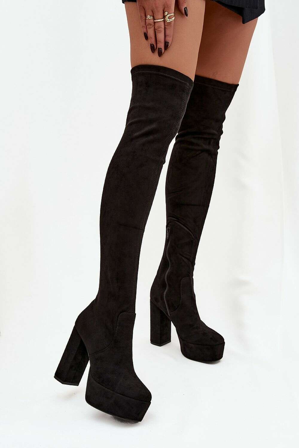 Step into modern elegance with Women Eco Suede Over The Knee Boots With Platform Heel Slip On. Crafted from soft eco suede, these knee-high boots blend sustainable materials with sleek city-chic style. The combination of a sturdy platform and a column heel provides an elevated silhouette with all-day comfort. The slip-on design is complemented by a side zipper for easy on and off, keeping the fit secure and streamlined.