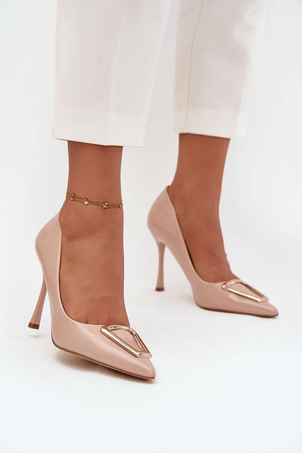 Women's high heels made of eco leather are an elegant proposition for special occasions. Slim, pointy toes visually slenderize the foot and add elegance to the whole look, while the decorative detail at the front attracts attention and emphasizes the feminine character of the shoes. The soft insole ensures comfort while wearing. This is a classic model that will work perfectly with both elegant dresses and more modern stylizations.