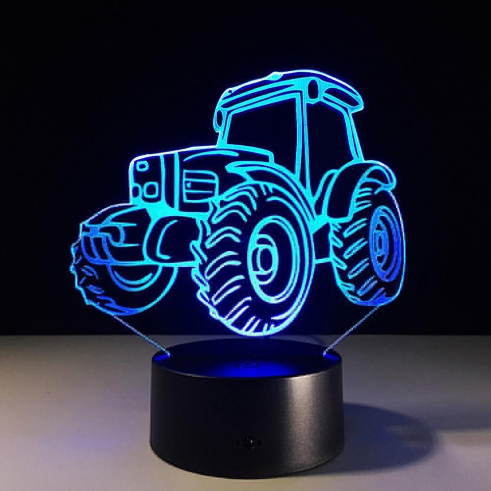 3D 트랙터 테이블 램프 침실 터치 야간 조명 7색 LED 가정 장식 선물