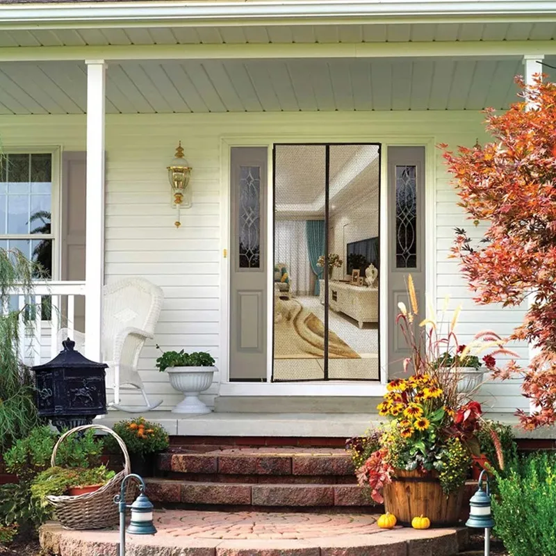 펀치없는 강력한 자기 도어 커튼 - 벌레 곤충 파리 모기장 - 측면 개방형 자동 폐쇄 보이지 않는 메쉬 거즈