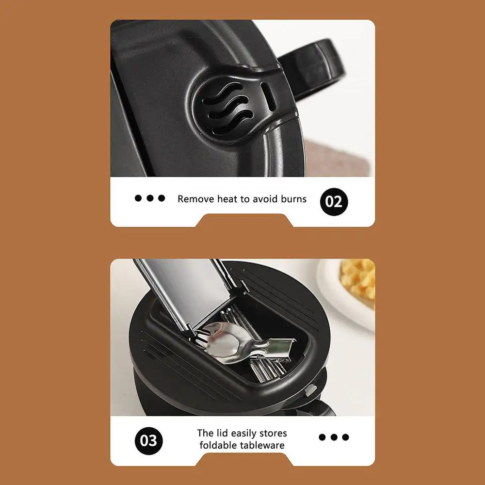 - Easy-to-Store Options: Equipped with folding utensils that fit neatly into a dedicated compartment within the lid, this bowl makes dining effortless and mess-free.