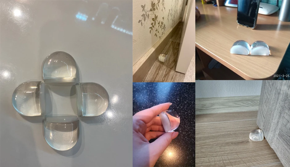 - 바닥 친화적: 이 세트에는 불쾌한 냄새가 남지 않는 4개의 반원형 투명 도어 스톱이 포함되어 있습니다. 컴팩트한 크기(4.2 x 3.6 x 2.2 cm)로 인해 부피가 큰 금속 대체 제품보다 훨씬 우수합니다.