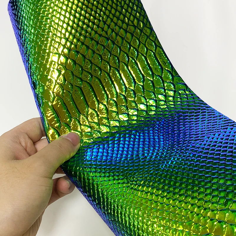 30x135cm 스네이크 스킨 그레인 양각 홀로그램 스펀레이스 패브릭 시트