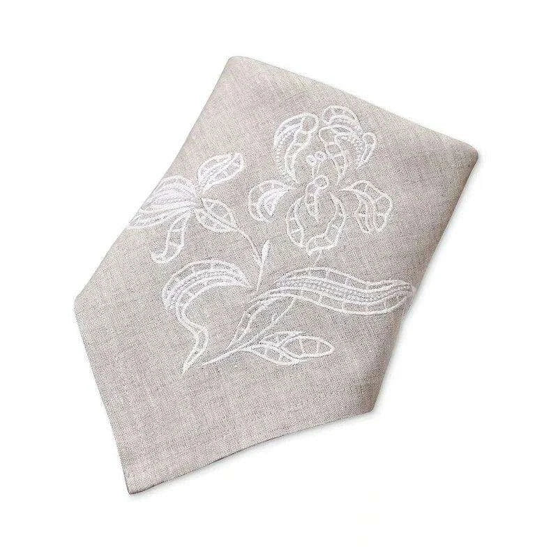 Iris Blossom Embroidered Linen Napkin Collection - Luxurious European Flax Tableware