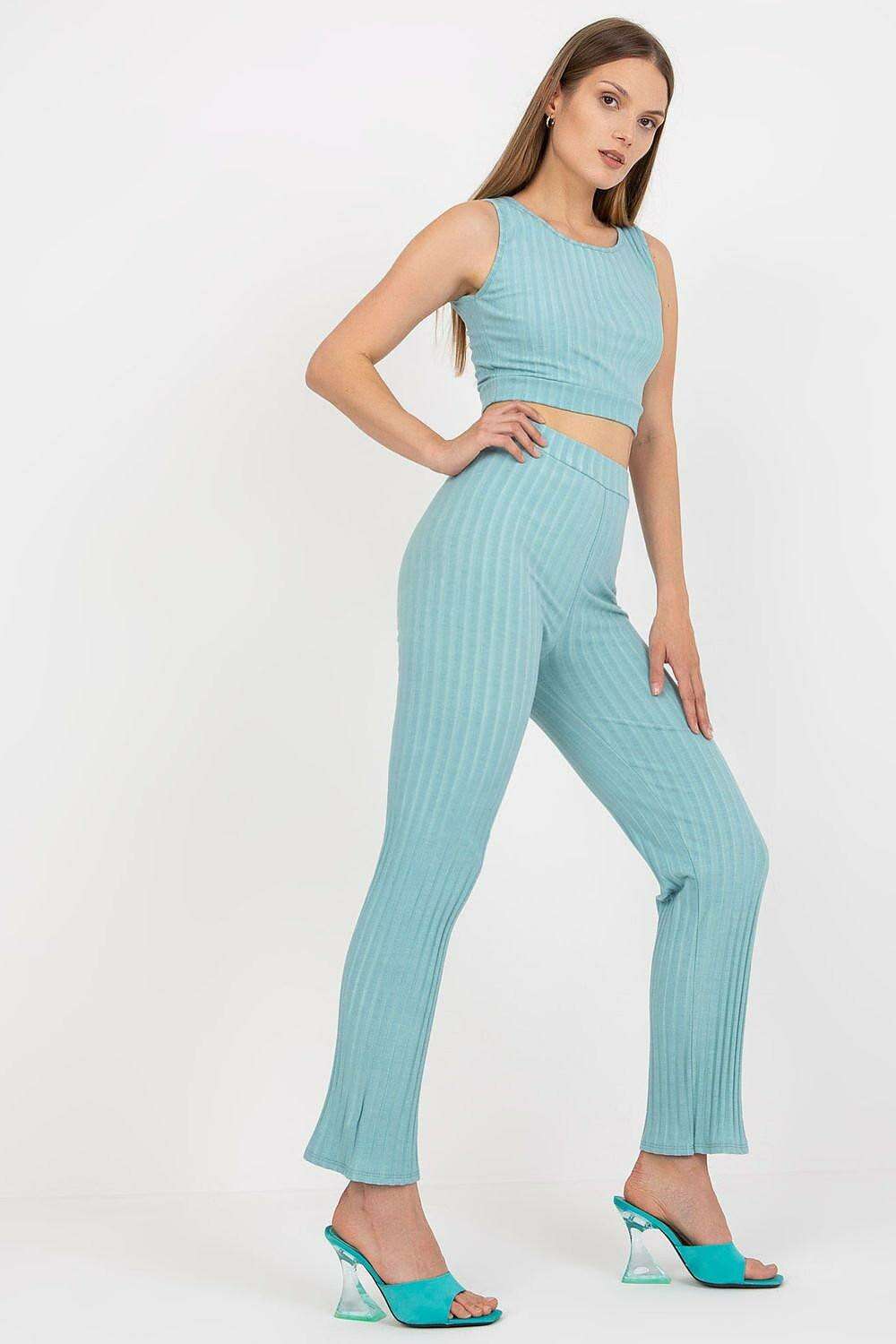Italy Moda Ribbed Cotton Top and Trousers Set for Women