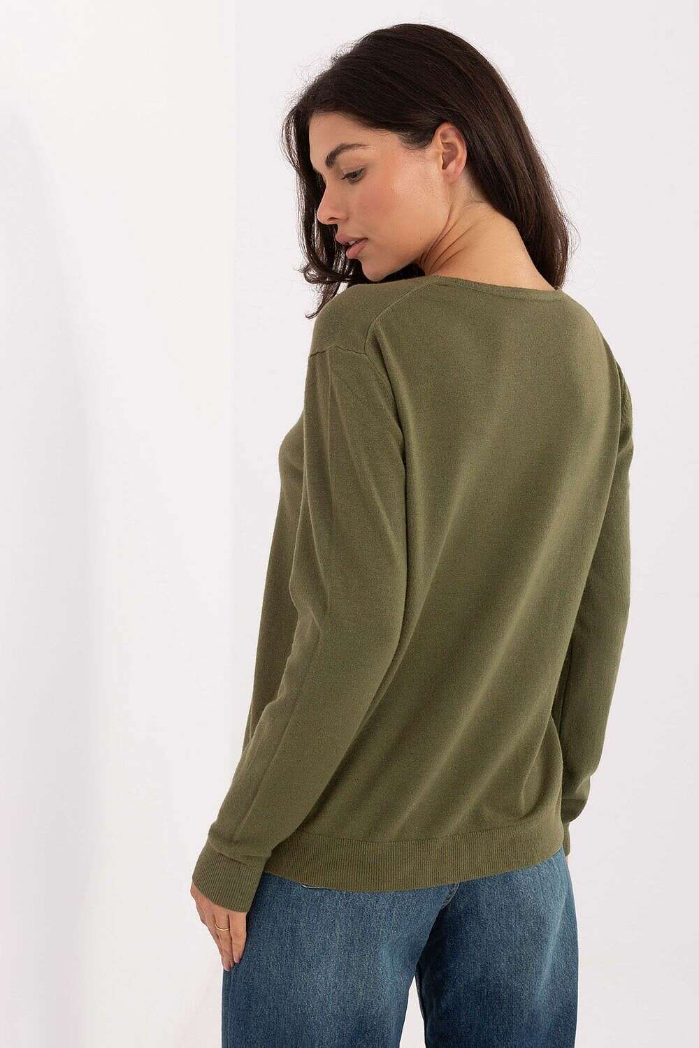 Stylish women's sweater of standard length, made of soft and stretchy blend of viscose, elastane, modal and polyamide, which ensures comfort and a perfect fit. The model features long sleeves and a V-neckline, subtly emphasizing the neckline. The smooth, dominant pattern of the sweater will work perfectly in casual, everyday, and work outfits. The sizing of the model is lower, the tag may indicate M/L, but the cut is smaller, therefore it is recommended for people wearing S or M. The lack of fastening emphasizes the simple and elegant character of the sweater.