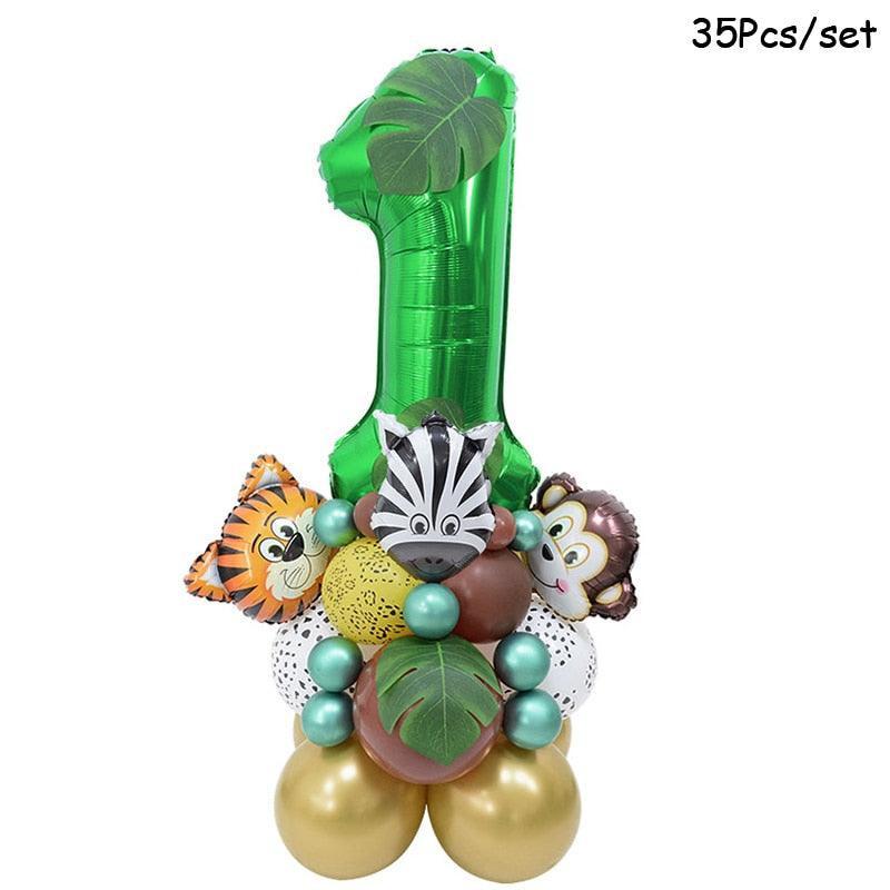 정글 생일 파티 장식 동물 야자 잎 식탁보 컵 플레이트 야생 한 우드랜드 사파리 1 아이 생일 파티 장식