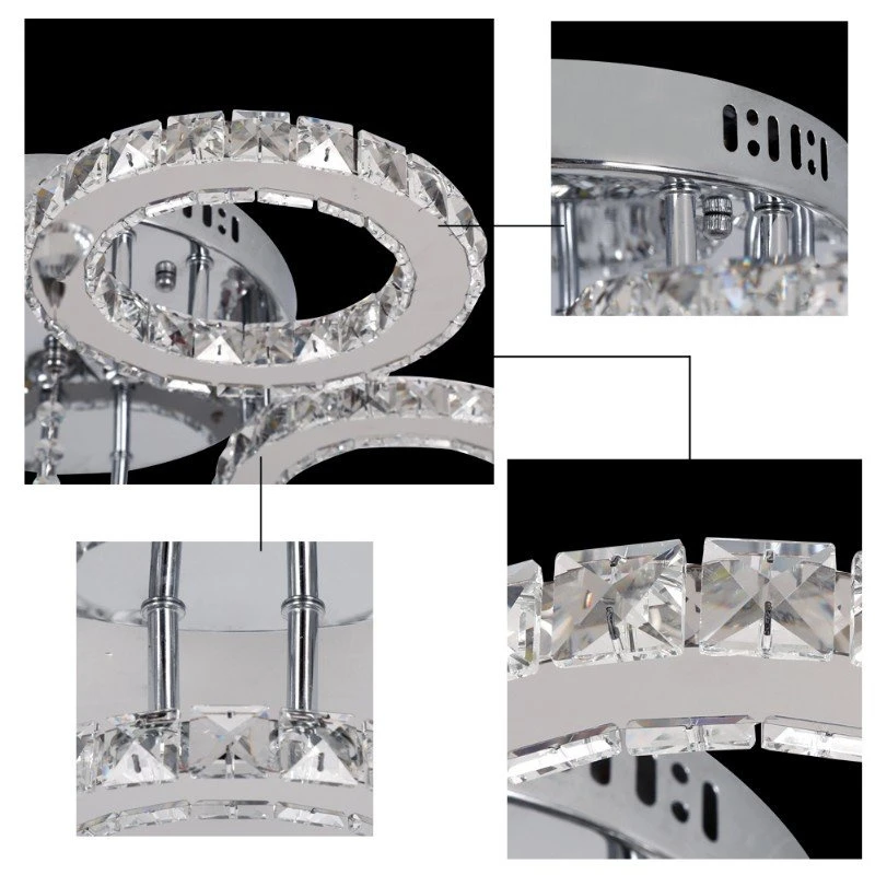 Modern K9 Crystal Chandelier로 가정 장식을 높이십시오. 이 우아한 고정 장치는 서로를 완벽하게 보완하는 고품질 크리스탈과 스테인리스 스틸로 만든 3개의 링을 특징으로 합니다. 30W LED 조명은 밝고 아름다운 빛을 보장하여 거실, 침실 또는 식당에 이상적인 선택입니다. 설치가 쉽고 2년 보증이 제공되는 이 샹들리에는 집에 세련미를 더하려는 사람들에게 꼭 필요한 제품입니다.