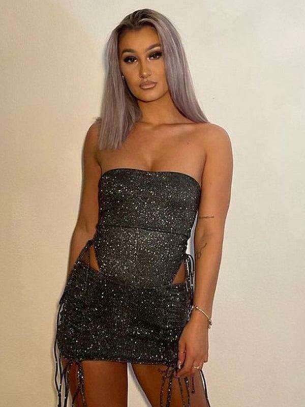 섹시 힙허깅 스커트 드로스트링 레이스업 슬림 스커트 투피스 세트