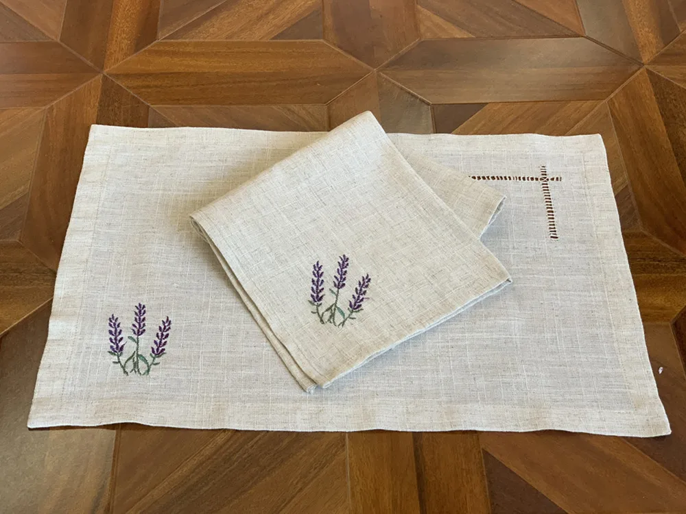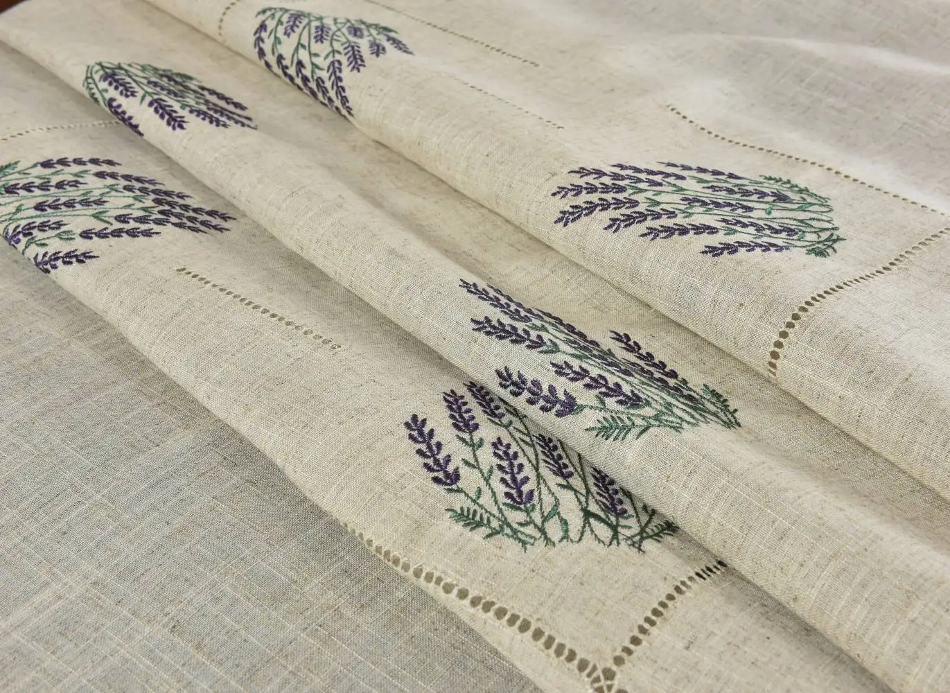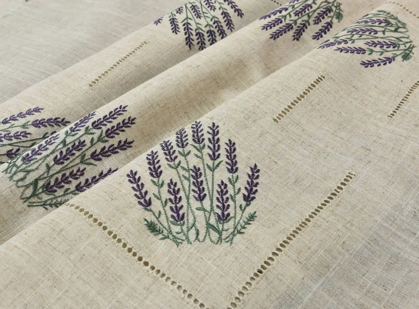 헴스티치 폴리+린넨 테이블보 프로방스, 프랑스, 라벤더 내추럴 컬러 연회/호텔/에어비앤비