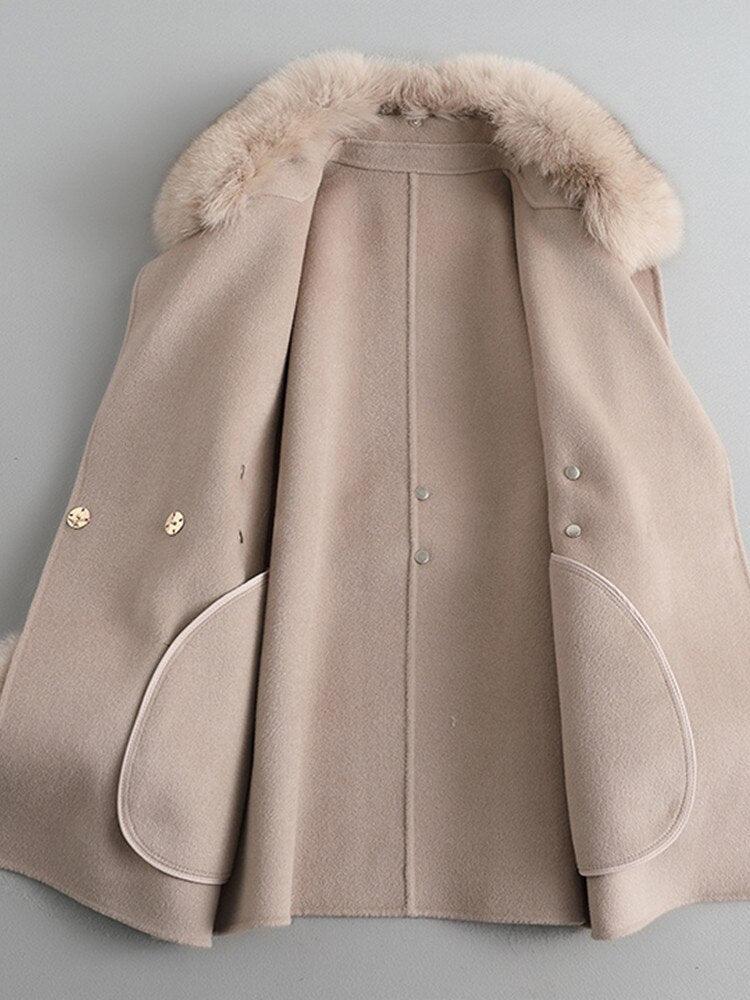 소재: 100% 리얼 캐시미어 울 혼합 + 천연 여우 모피 모피 칼라