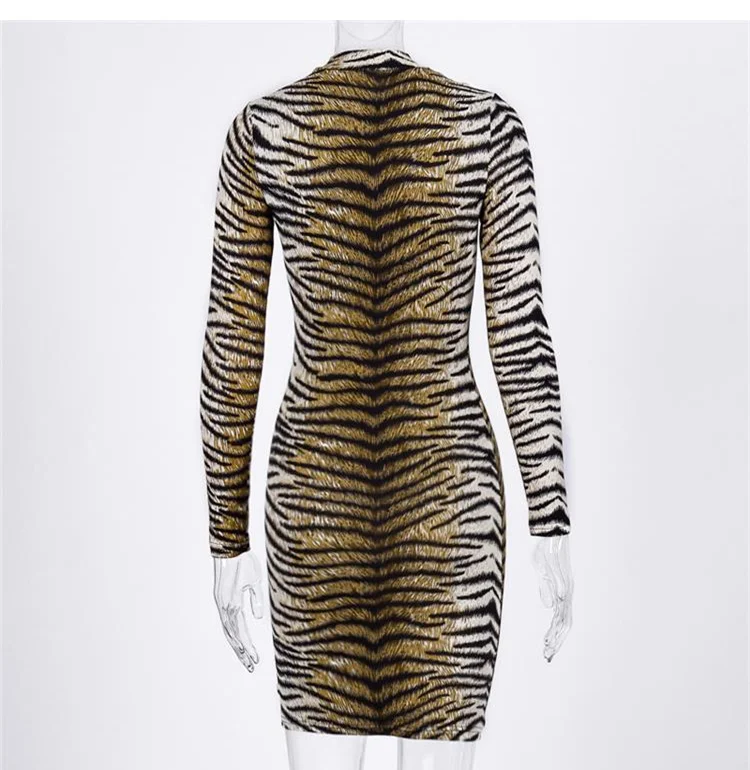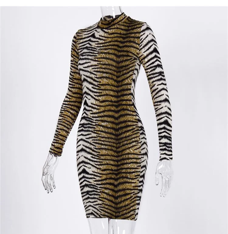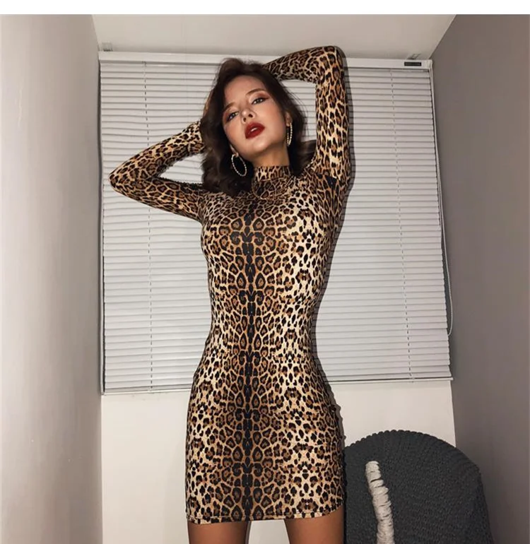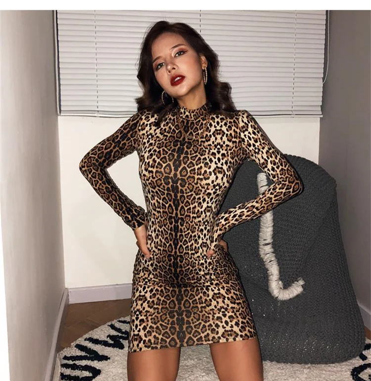 재정의된 럭셔리 우아함: 스프링 하이 넥 레오파드 바디콘 미니 드레스