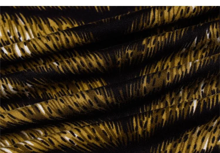 최고급 합성 섬유로 제작된 이 드레스는 고급스러움과 품질을 대표합니다. 화려한 폴리에스테르 소재가 장엄한 드레이프를 보장하며, 절묘한 표범 무늬가 보기 드문 세련미를 발산합니다. 안목 있는 엘리트들에게 이 작품은 안목과 세련미를 표현한 것입니다.