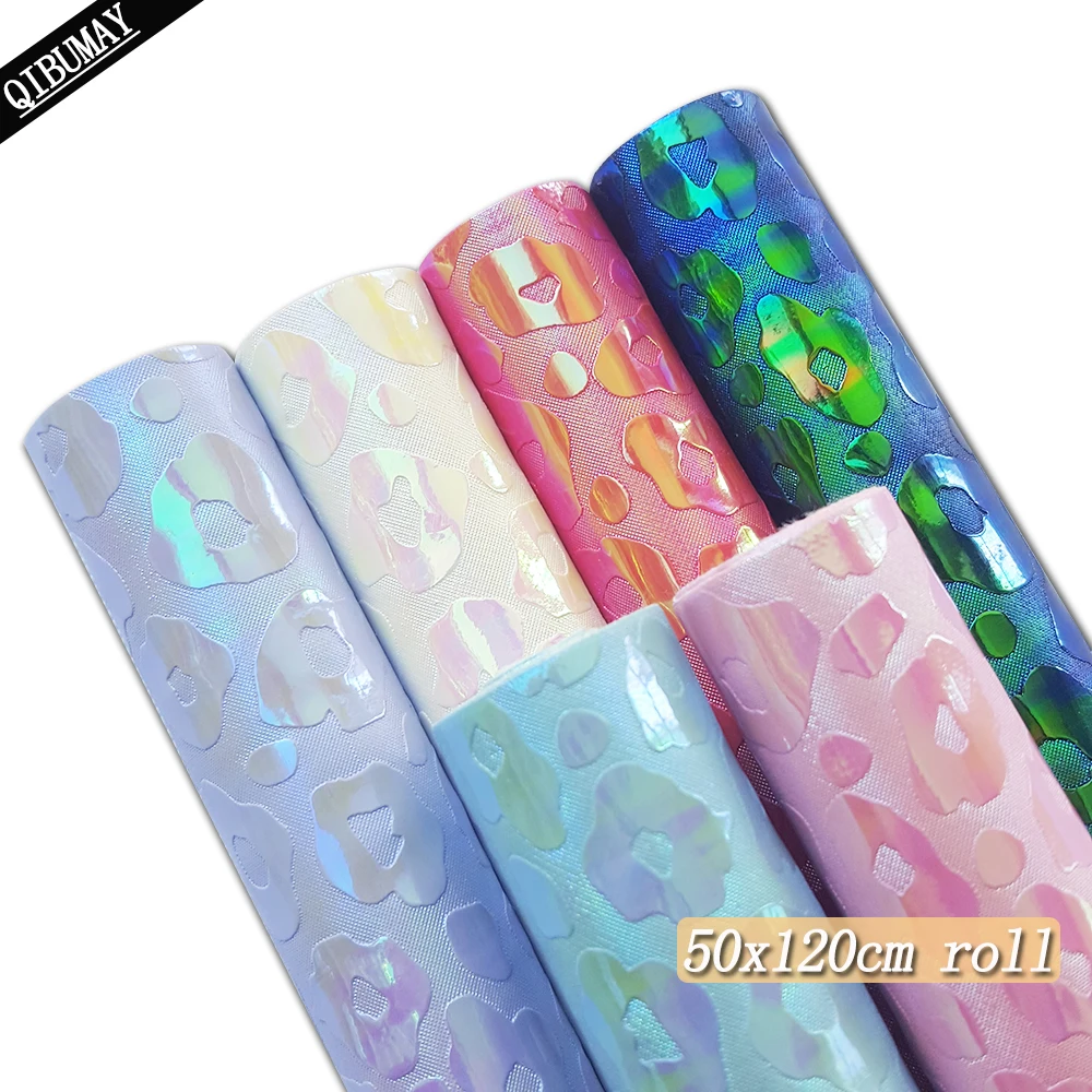 QIBU 50x120cm 레오파드 패턴 합성 가죽 패브릭 롤 솔리드 컬러 PU 가죽 소재 가방 공예 DIY Hairbow 장식