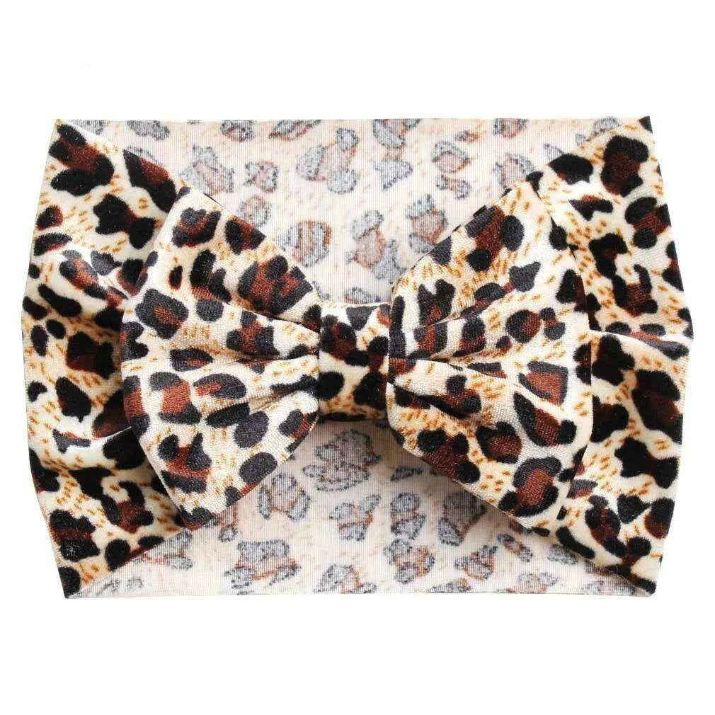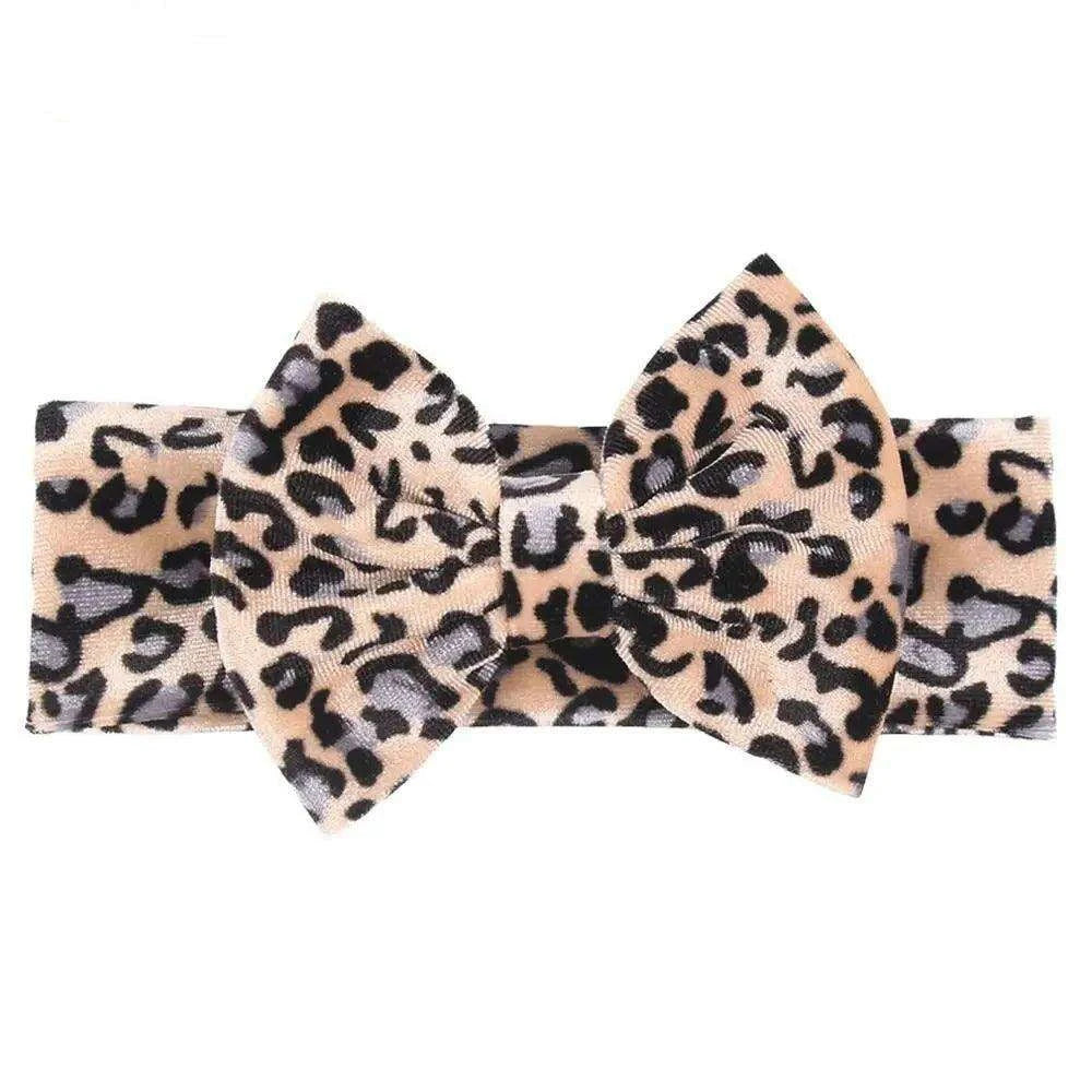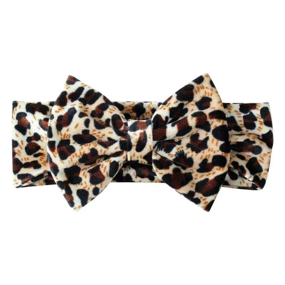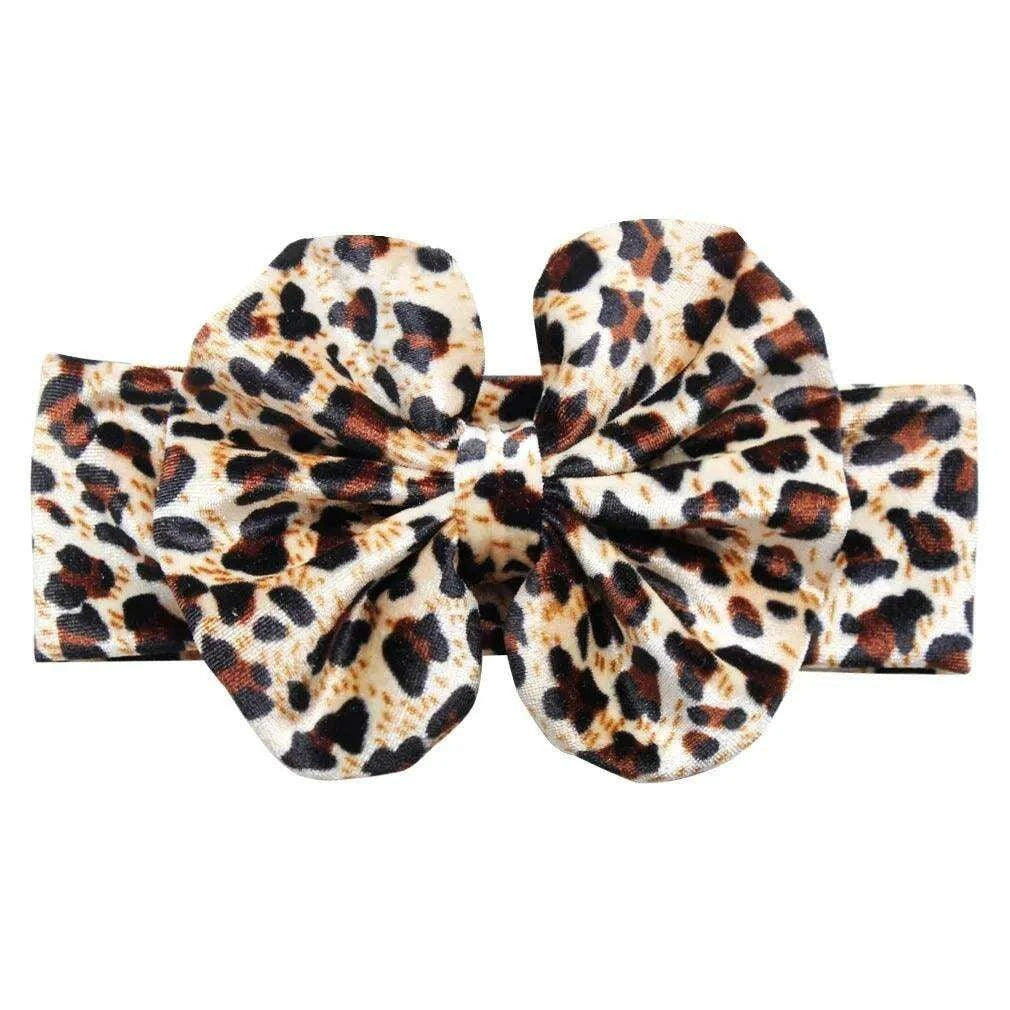 Leopard Print Velvet Headband and Hair Bow Set - Stylish Hair Accessories for Fashion-Forward Girls.