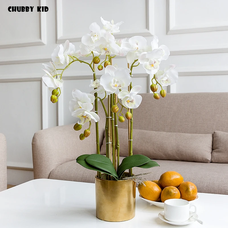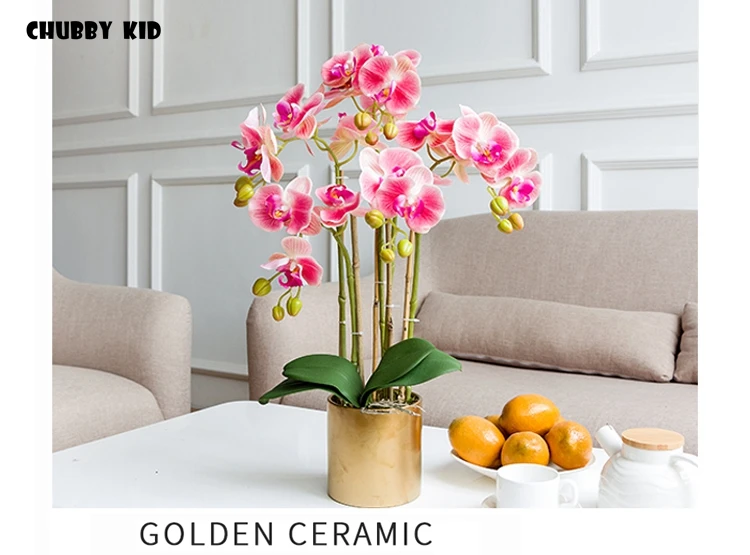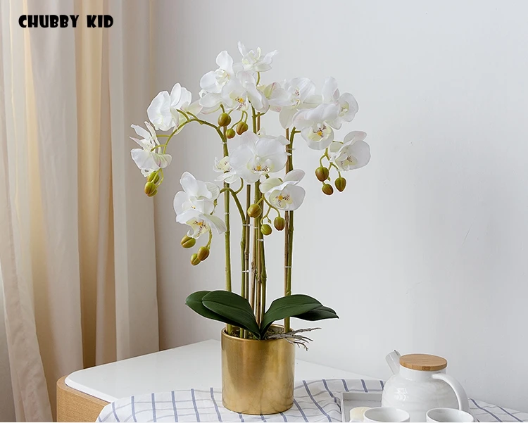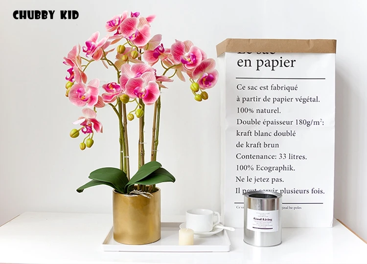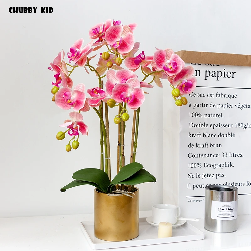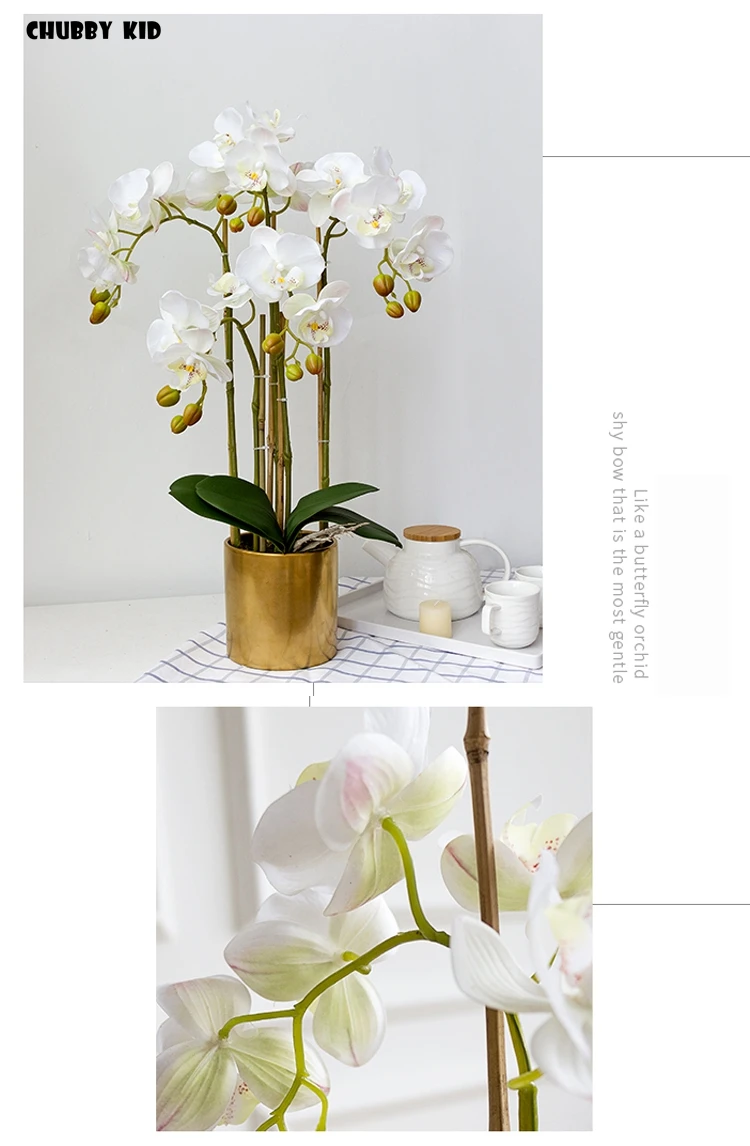 높은 시뮬레이션 3D 리얼 터치 인공 나비 난초 꽃꽂이 가짜 꽃 호 접 분재 꽃 장식품