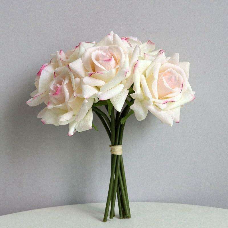 Luxury Botanica 5Pcs/bunch 리얼 터치 라텍스 빨 수있는 장미 손 꽃 인공 꽃 웨딩 장식 룸 장식 신부 플로레스