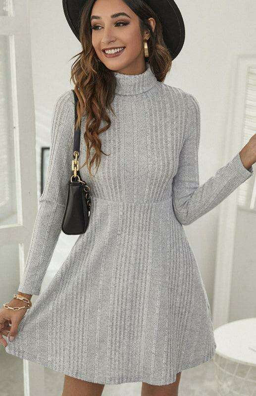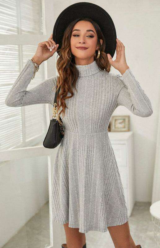 자코토 | 여성용 터틀넥 플리츠 A 라인 드레스