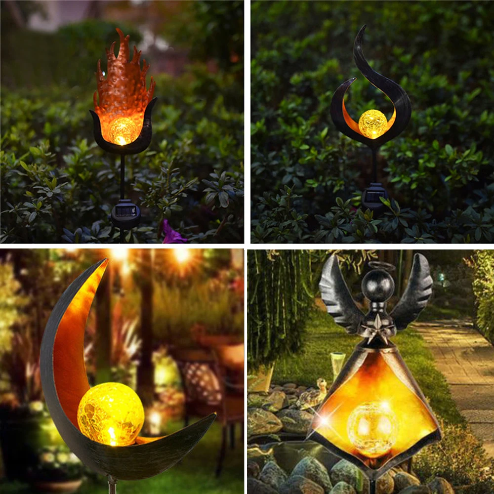 LED 태양 불꽃 빛 금속 LED 정원 빛 불꽃 효과 램프 방수 야외 조명 풍경 조명 태양 장식 조명