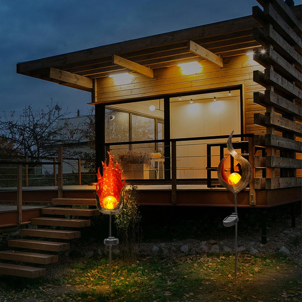 LED 태양 불꽃 빛, 금속 LED 정원 빛 불꽃 효과 램프 산책로 잔디 경로 정원 장식품에 대 한 방수 야외 조명