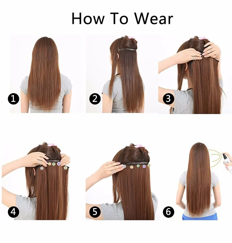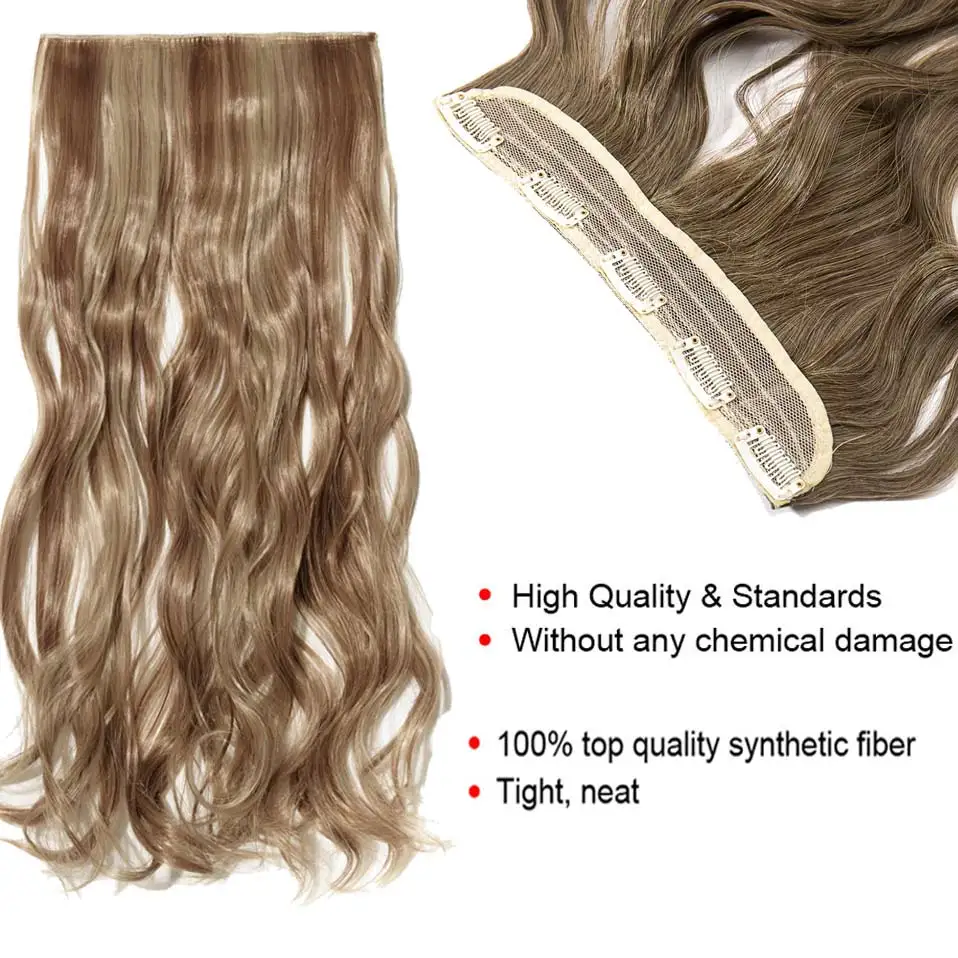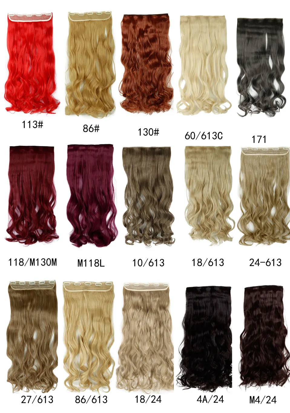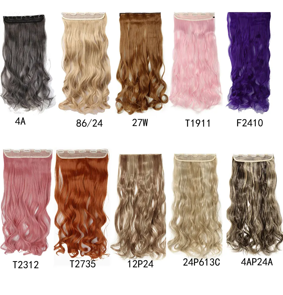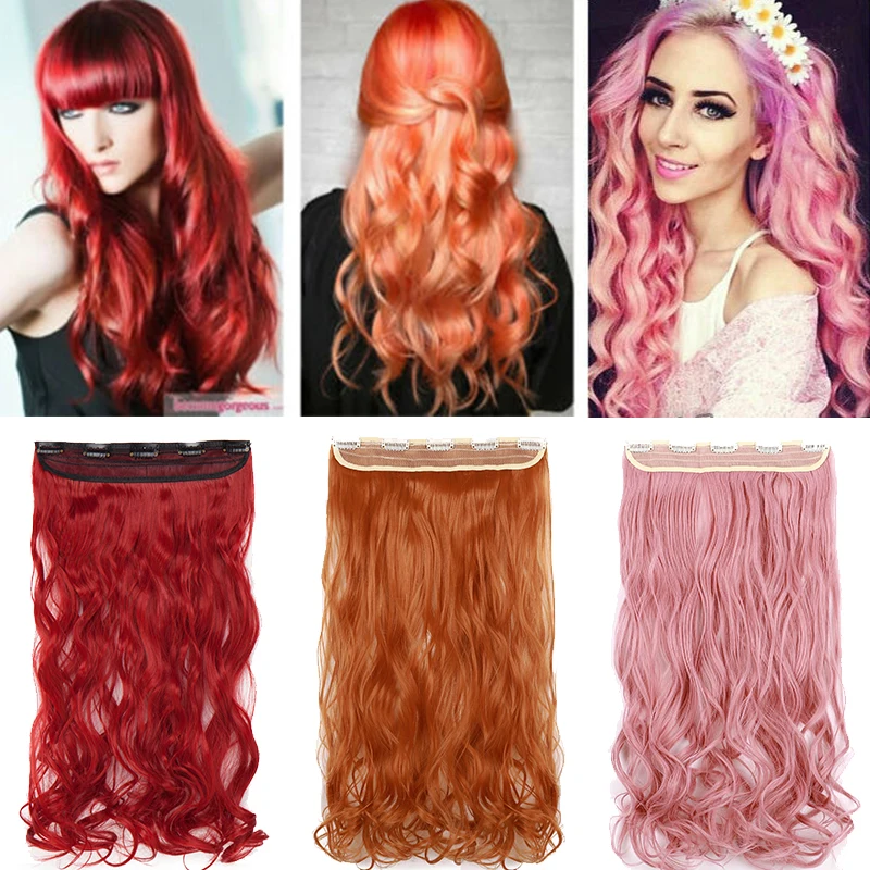 BENEHAIR 합성 헤어 피스 24 "5 클립 헤어 익스텐션 원피스 긴 곱슬 머리 확장 여성용 핑크 레드 퍼플 헤어
