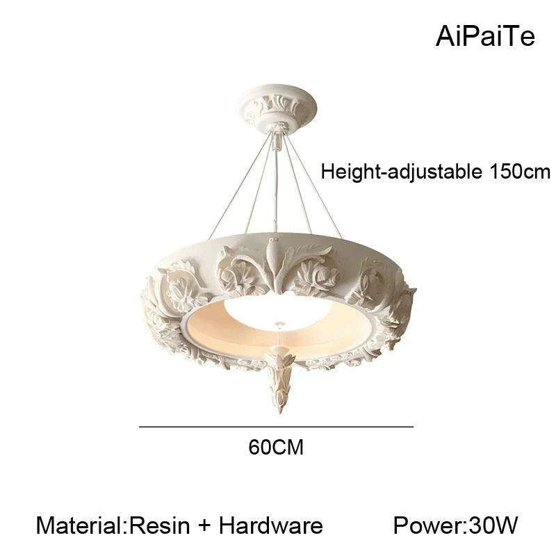 This chandelier is meticulously crafted from premium white resin and gypsum, designed to be the perfect centerpiece for your home, illuminating your space with unparalleled sophistication.