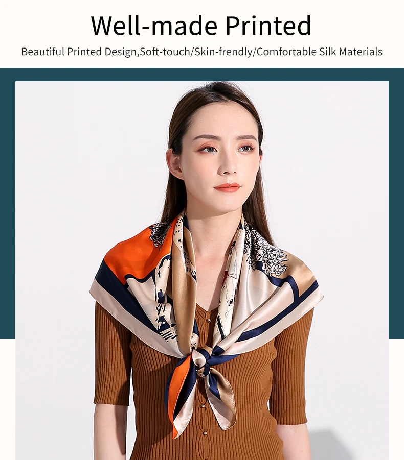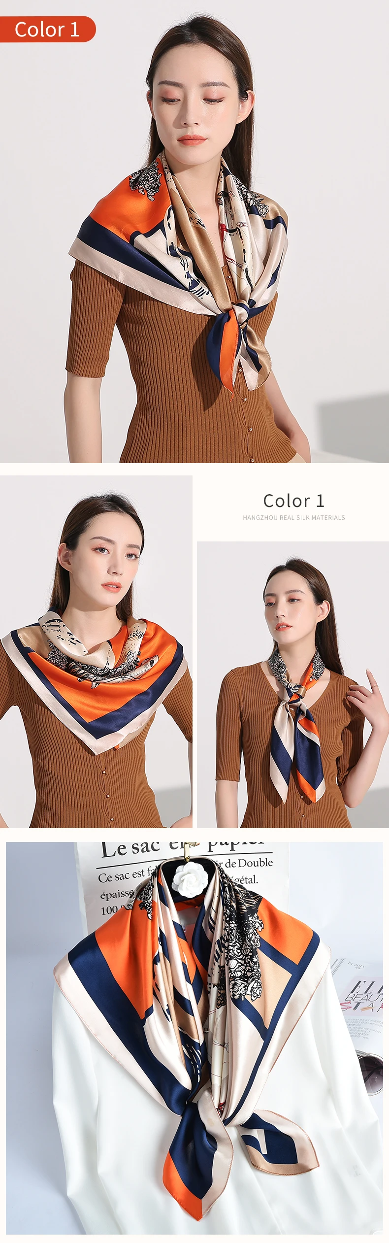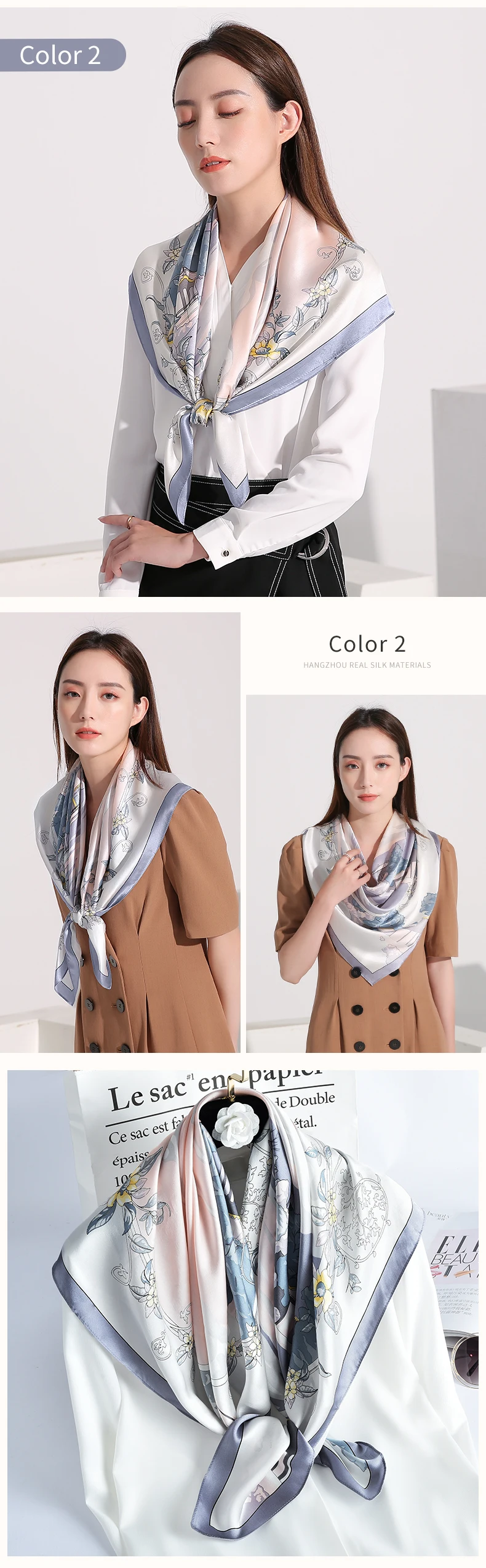 여성 100% 진짜 실크 스퀘어 스카프 항주 순수 실크 Neckscarf 포장 크리스마스 선물 현재 스퀘어 실크 스카프 Bandanas