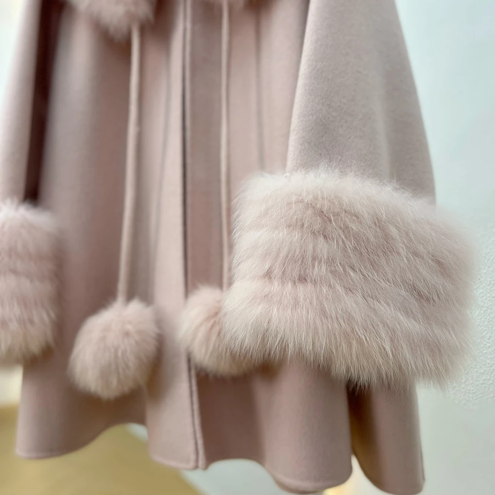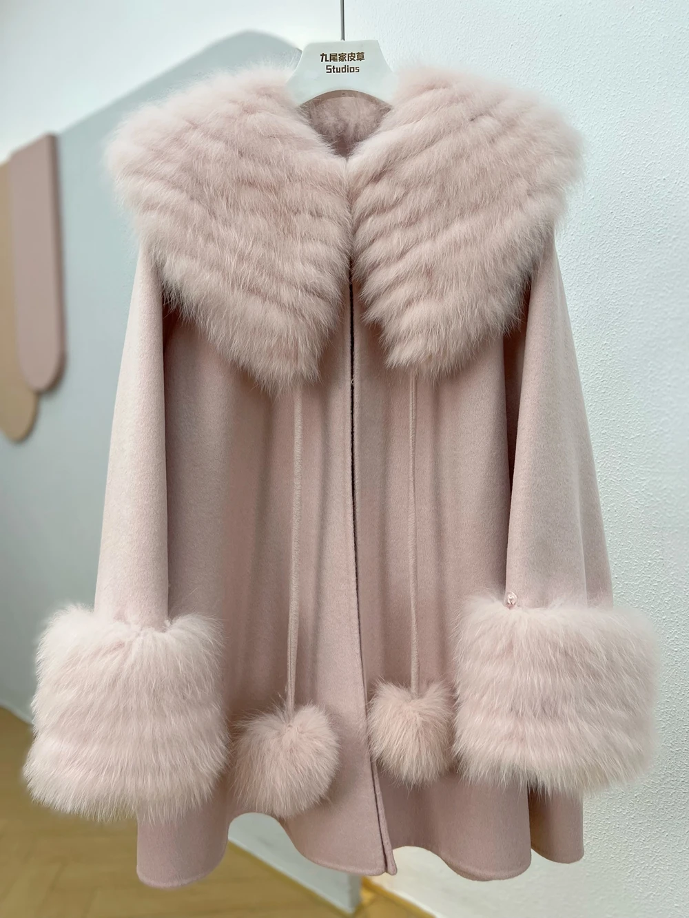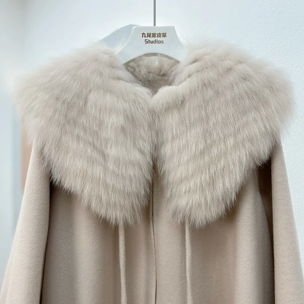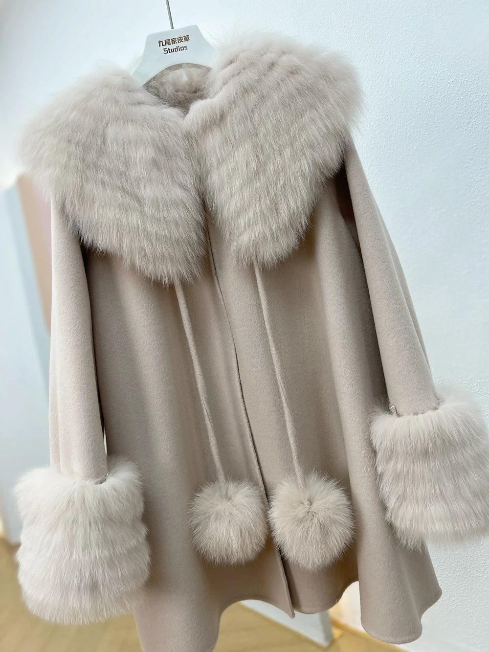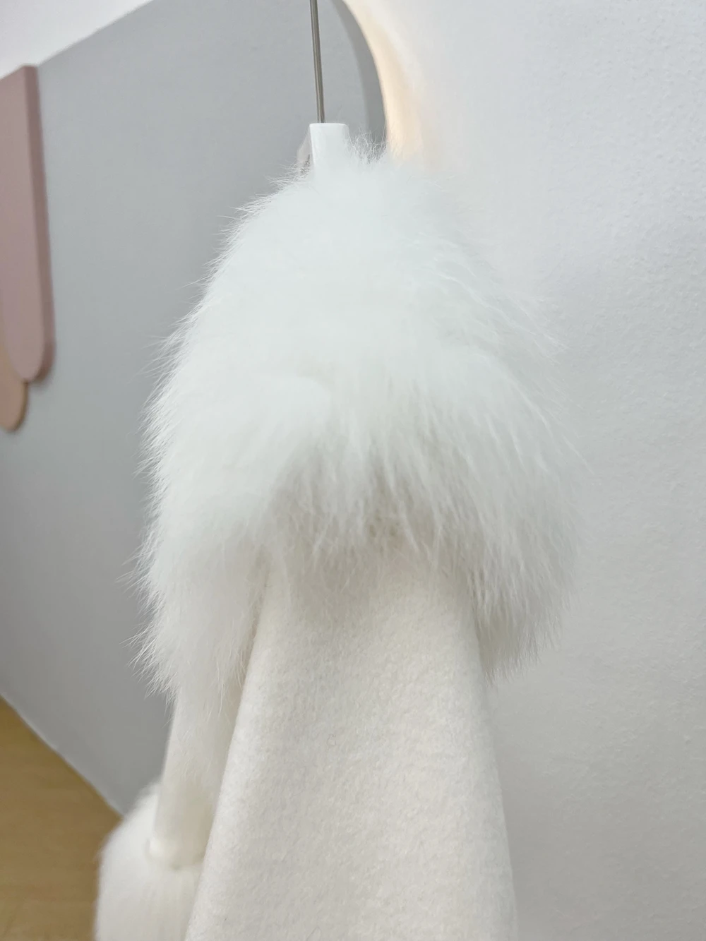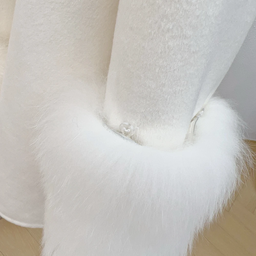 세련된 한국식 여성용 여우 모피 모직 케이프 – 시대를 초월한 우아함과 따뜻함