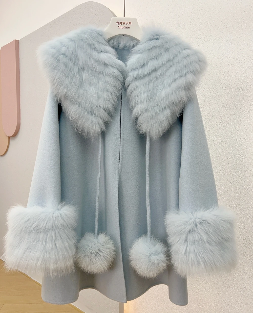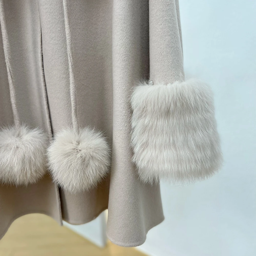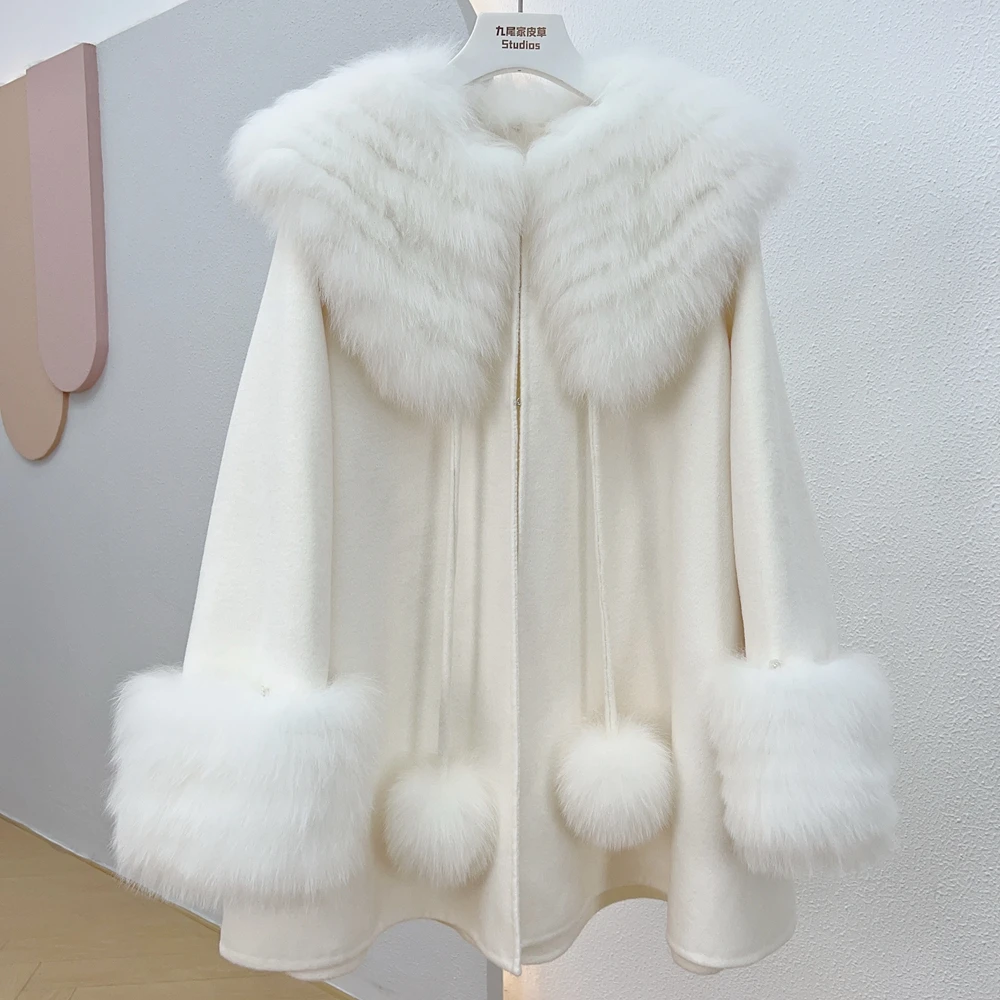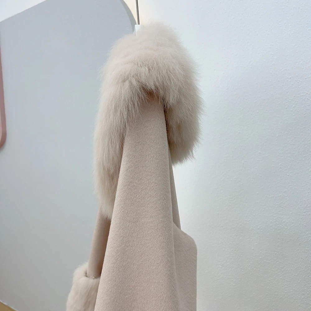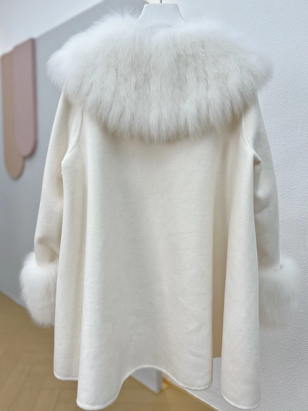 세련된 한국식 여성용 여우 모피 모직 케이프 – 시대를 초월한 우아함과 따뜻함