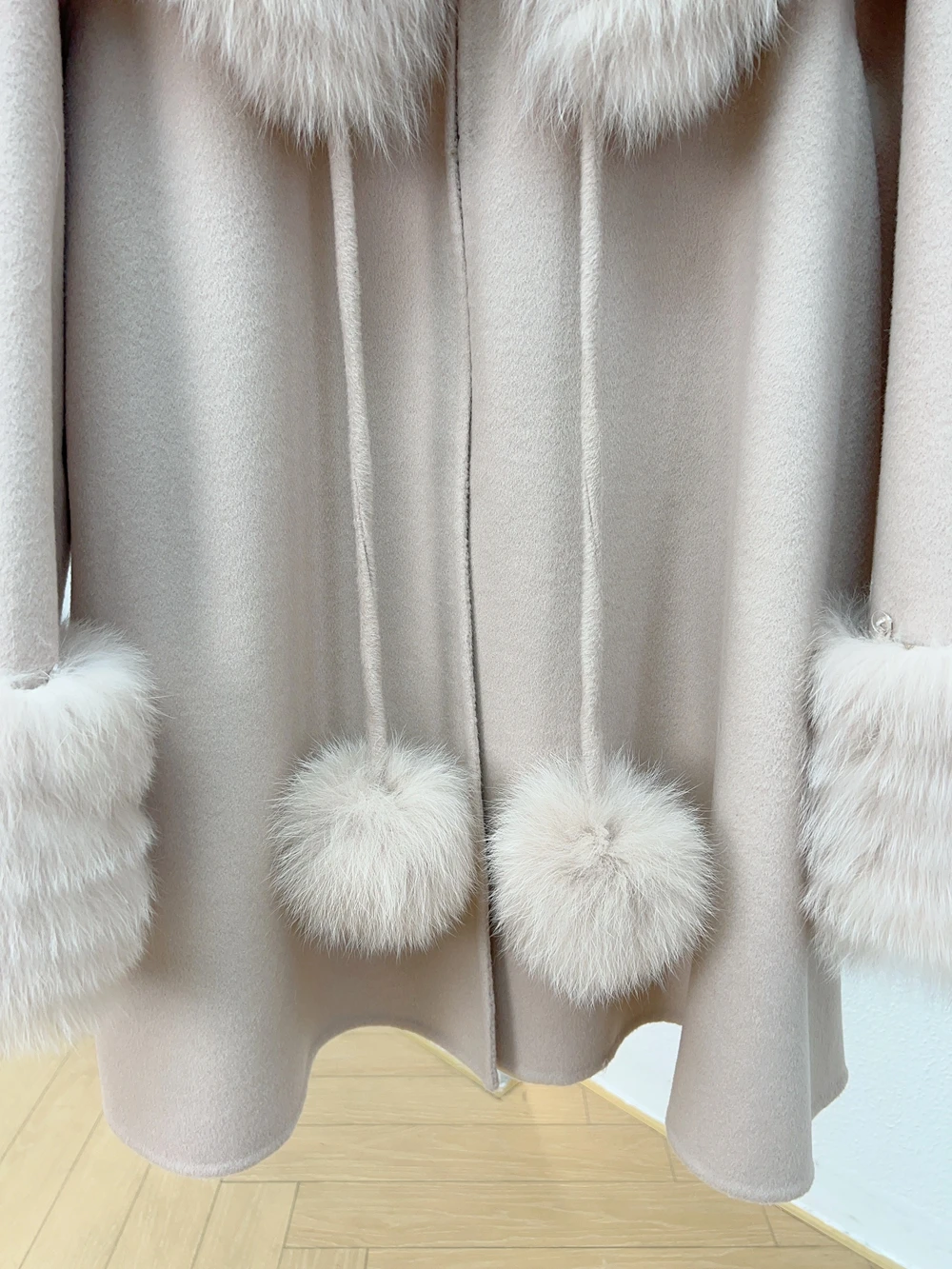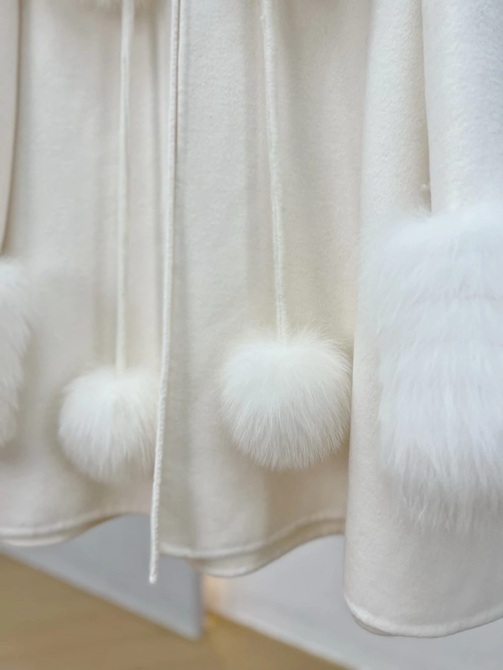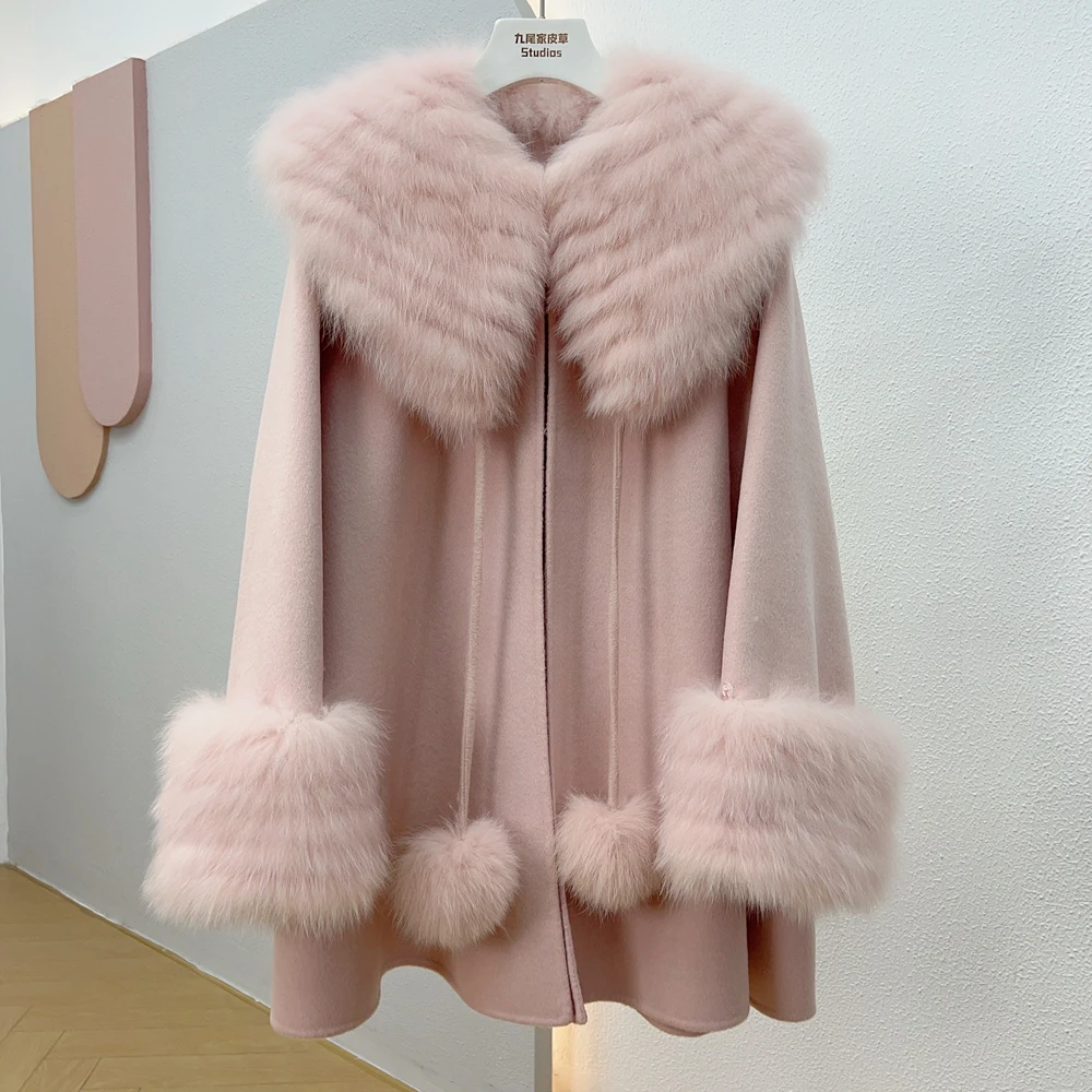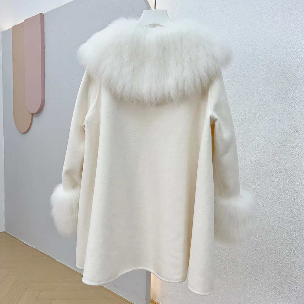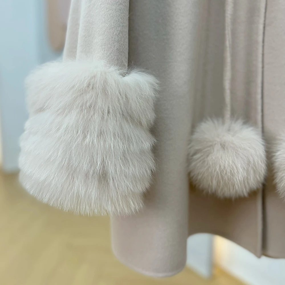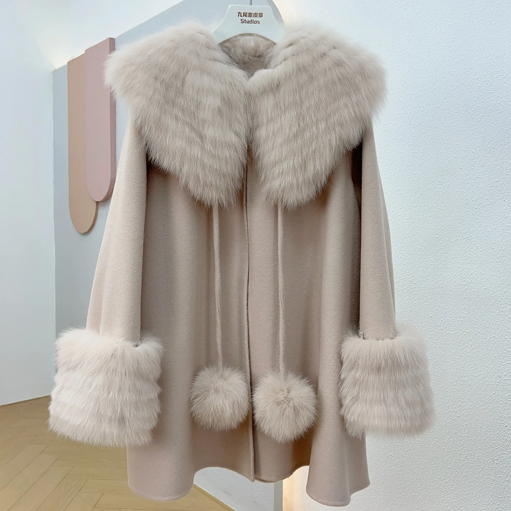 세련된 한국식 여성용 여우 모피 모직 케이프 – 시대를 초월한 우아함과 따뜻함
