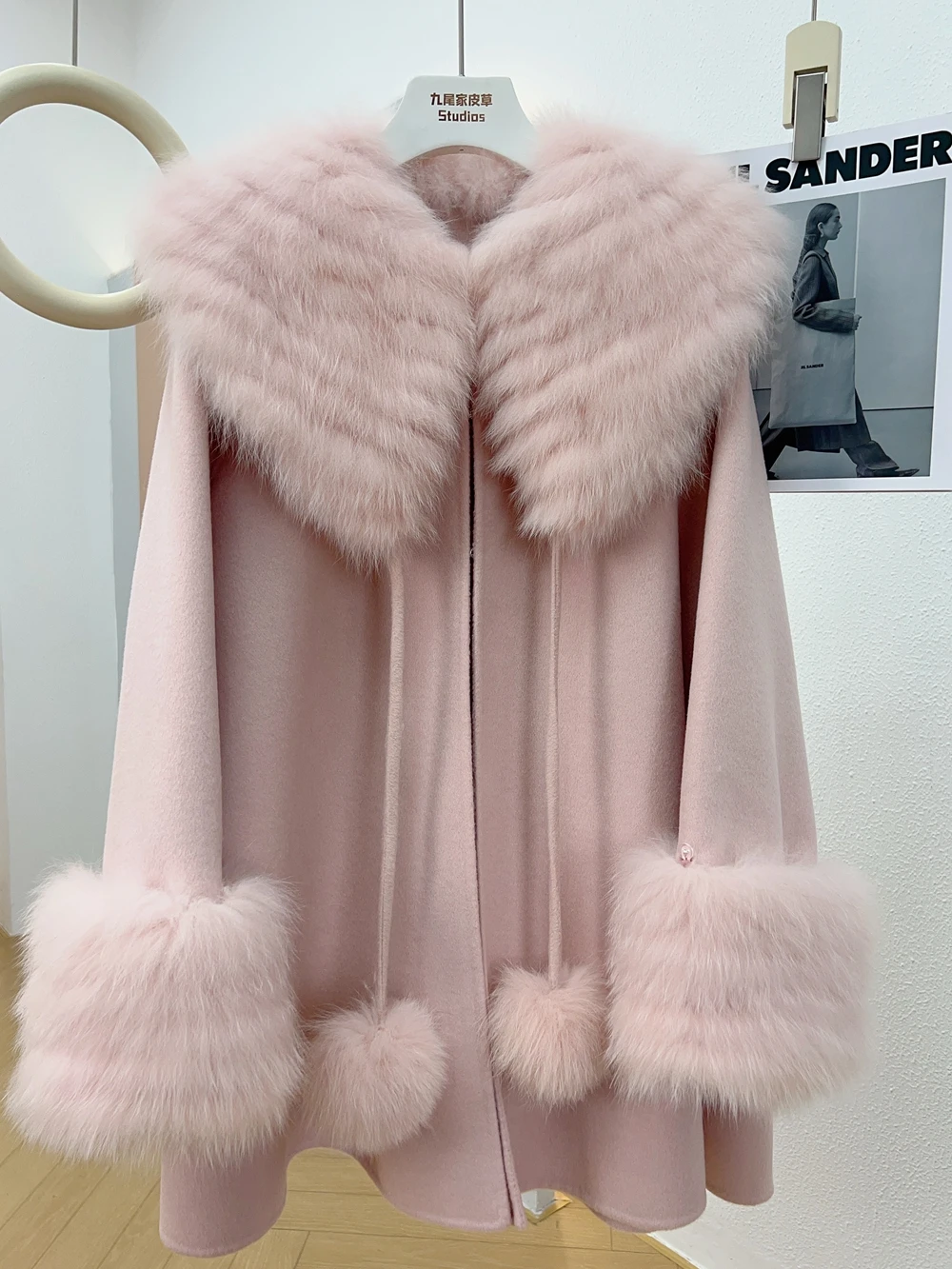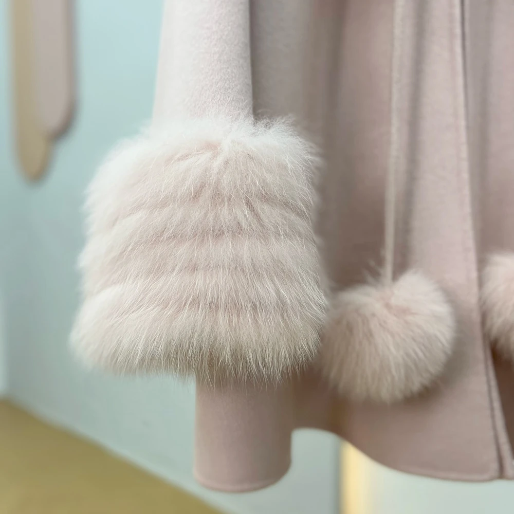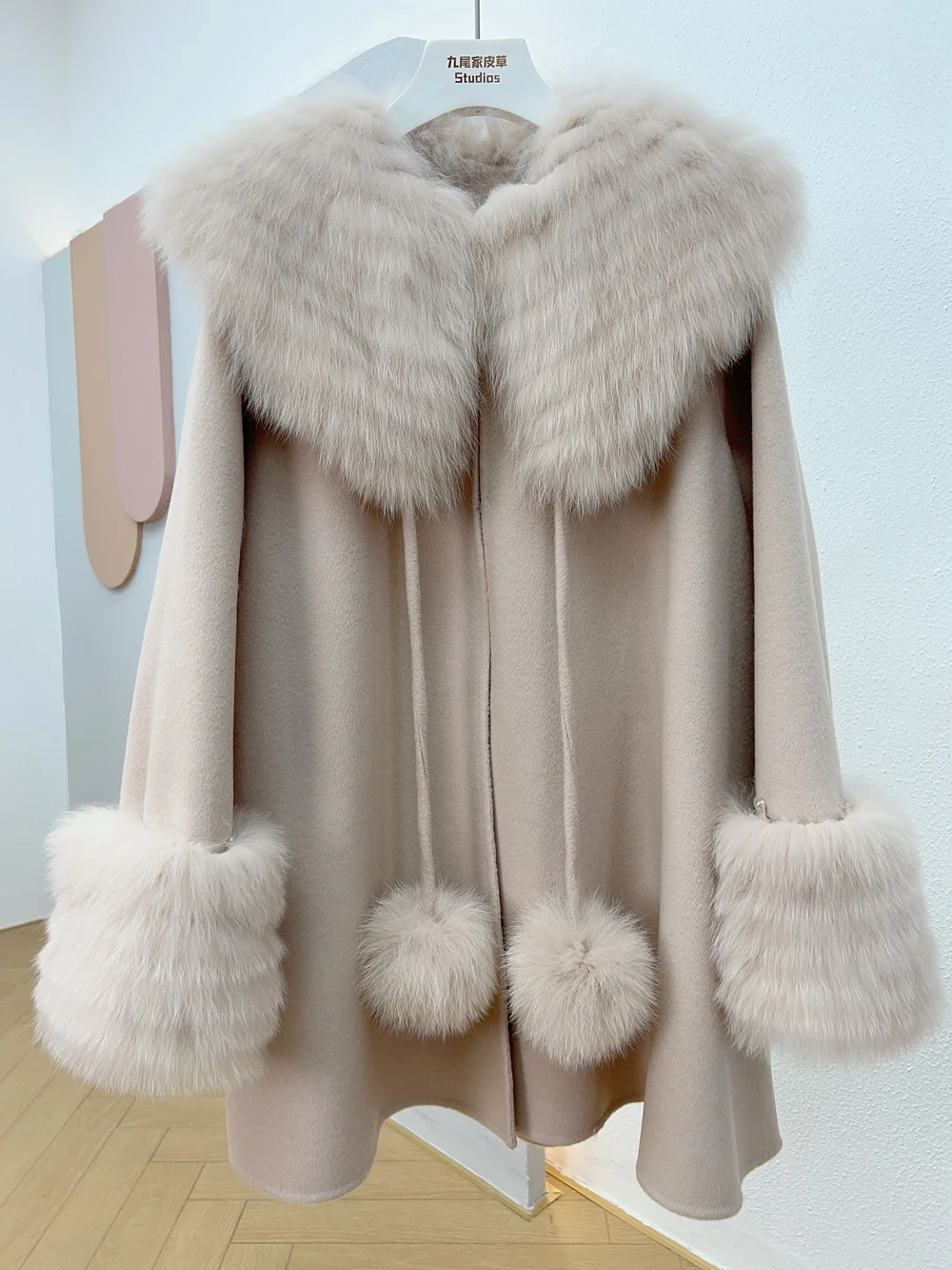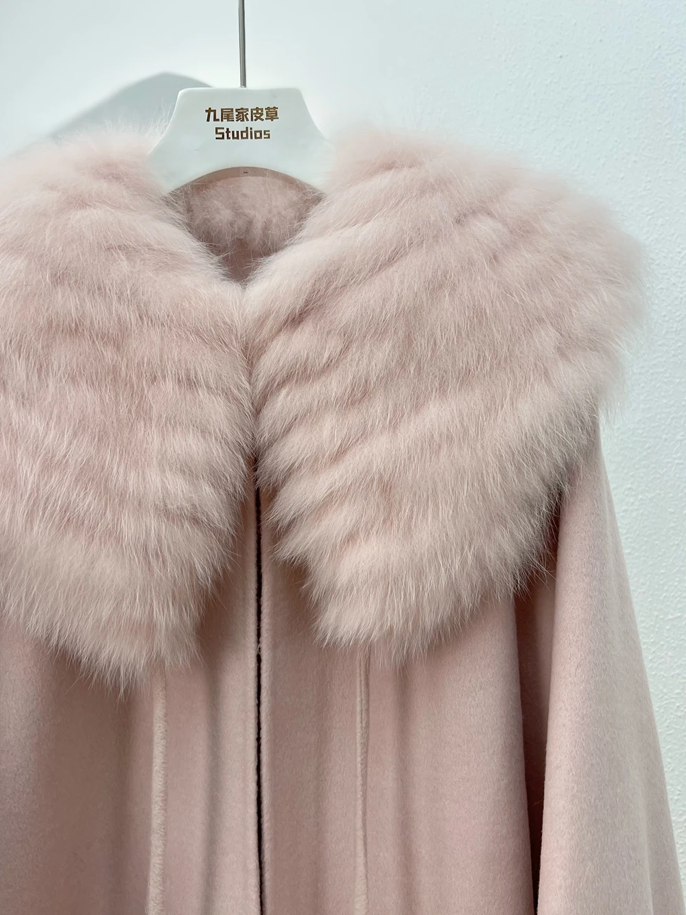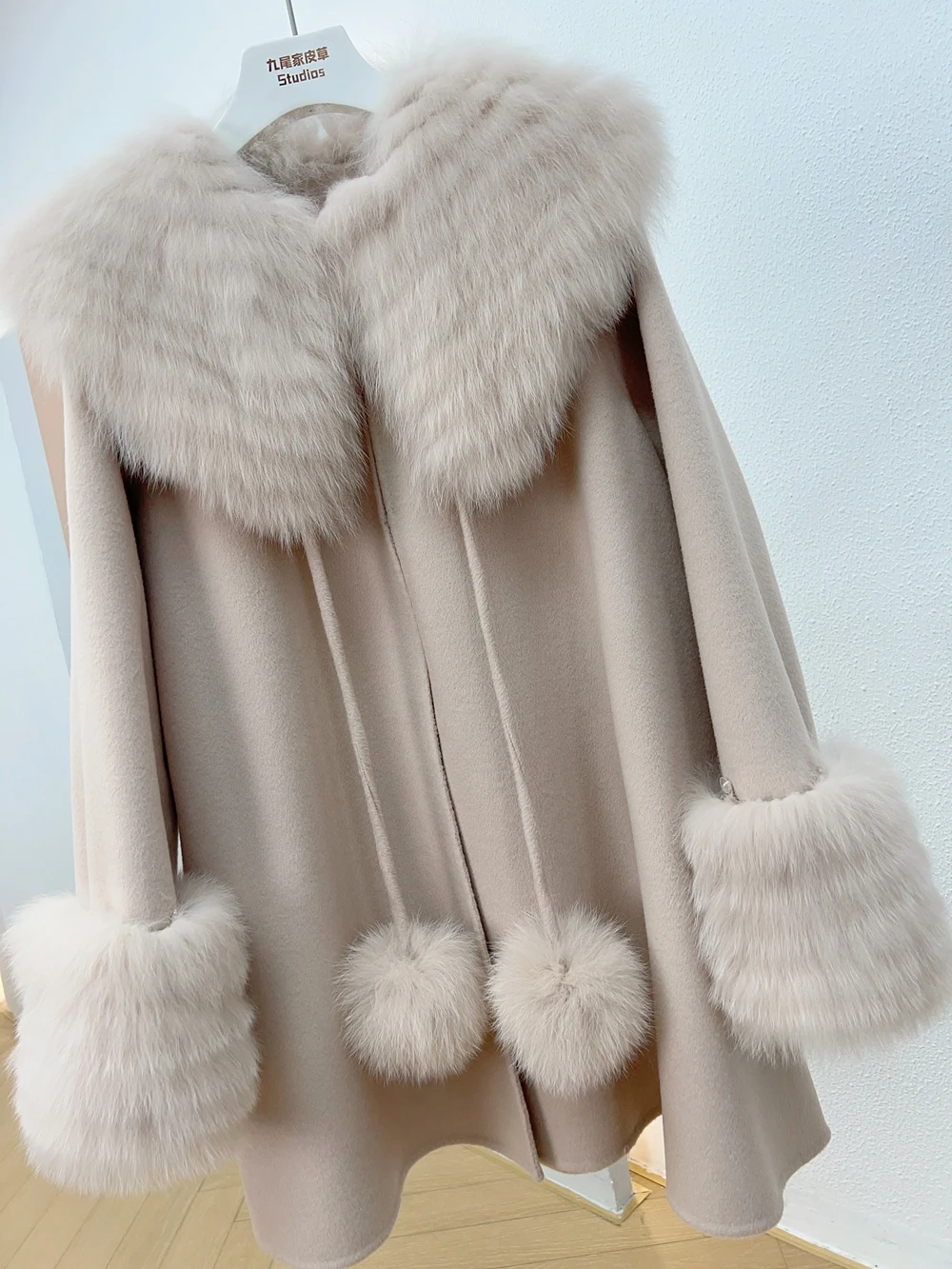 세련된 한국식 여성용 여우 모피 모직 케이프 – 시대를 초월한 우아함과 따뜻함