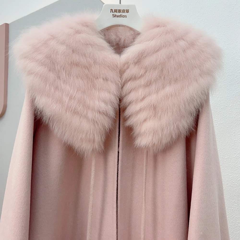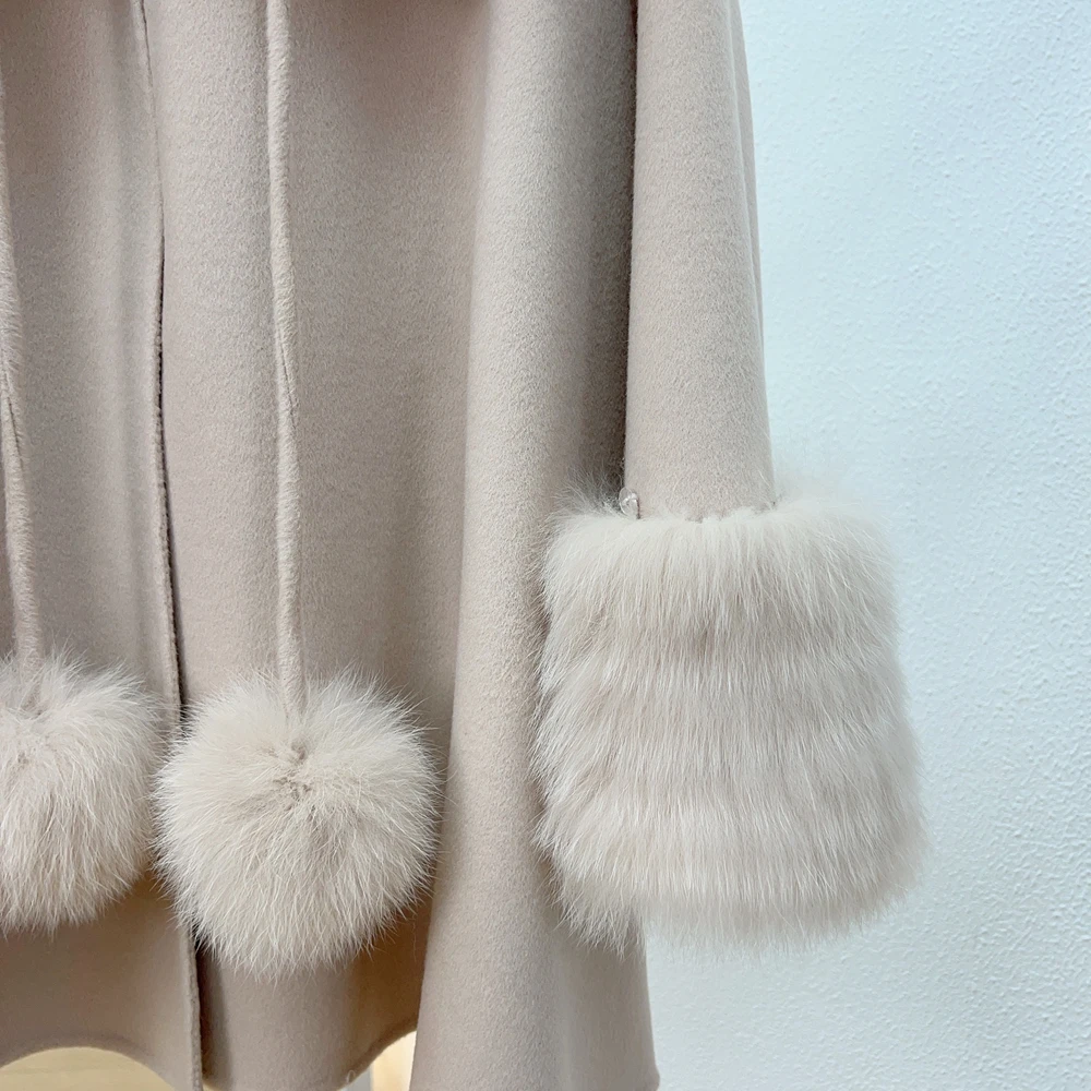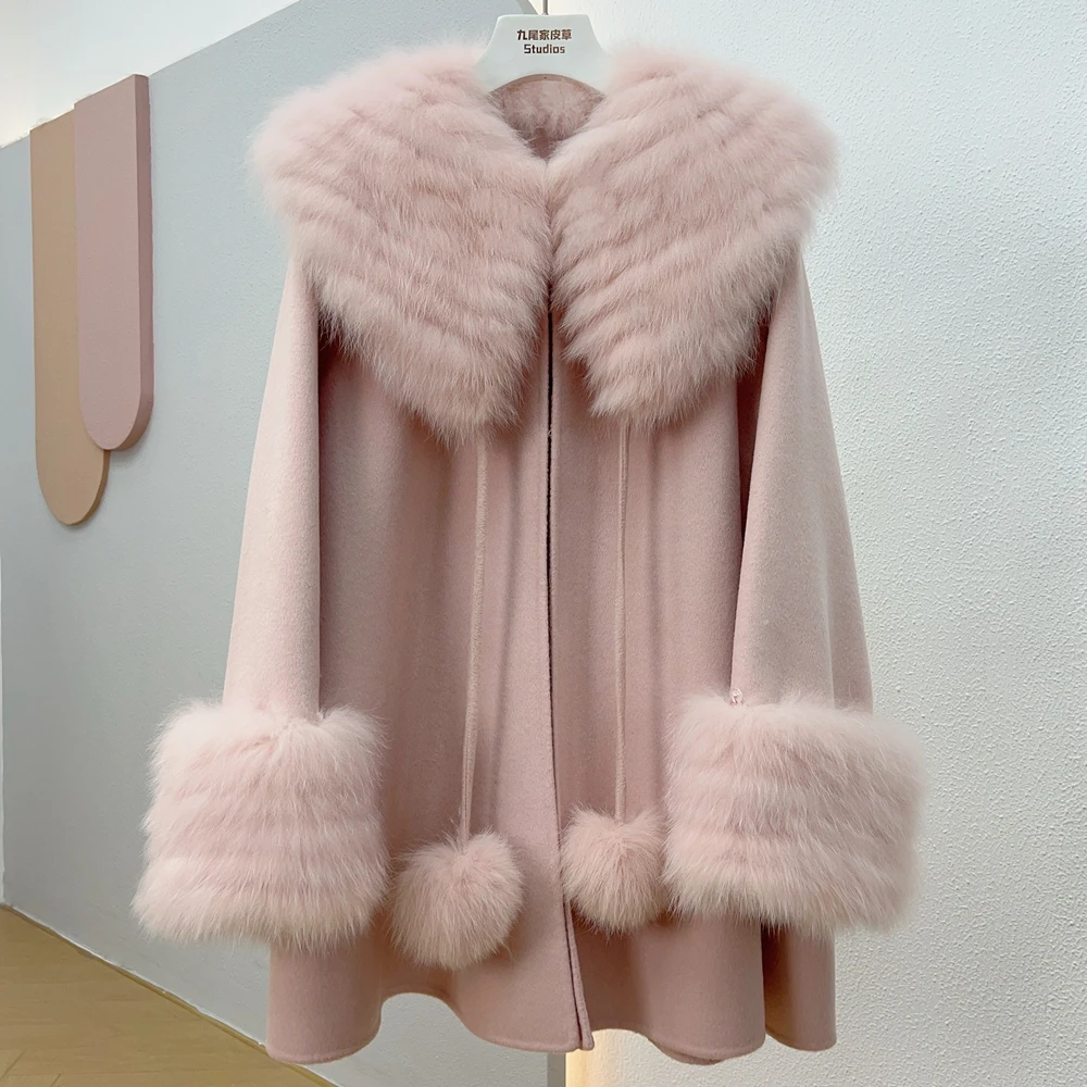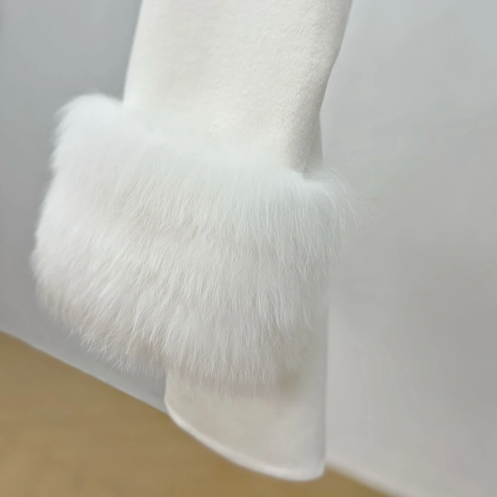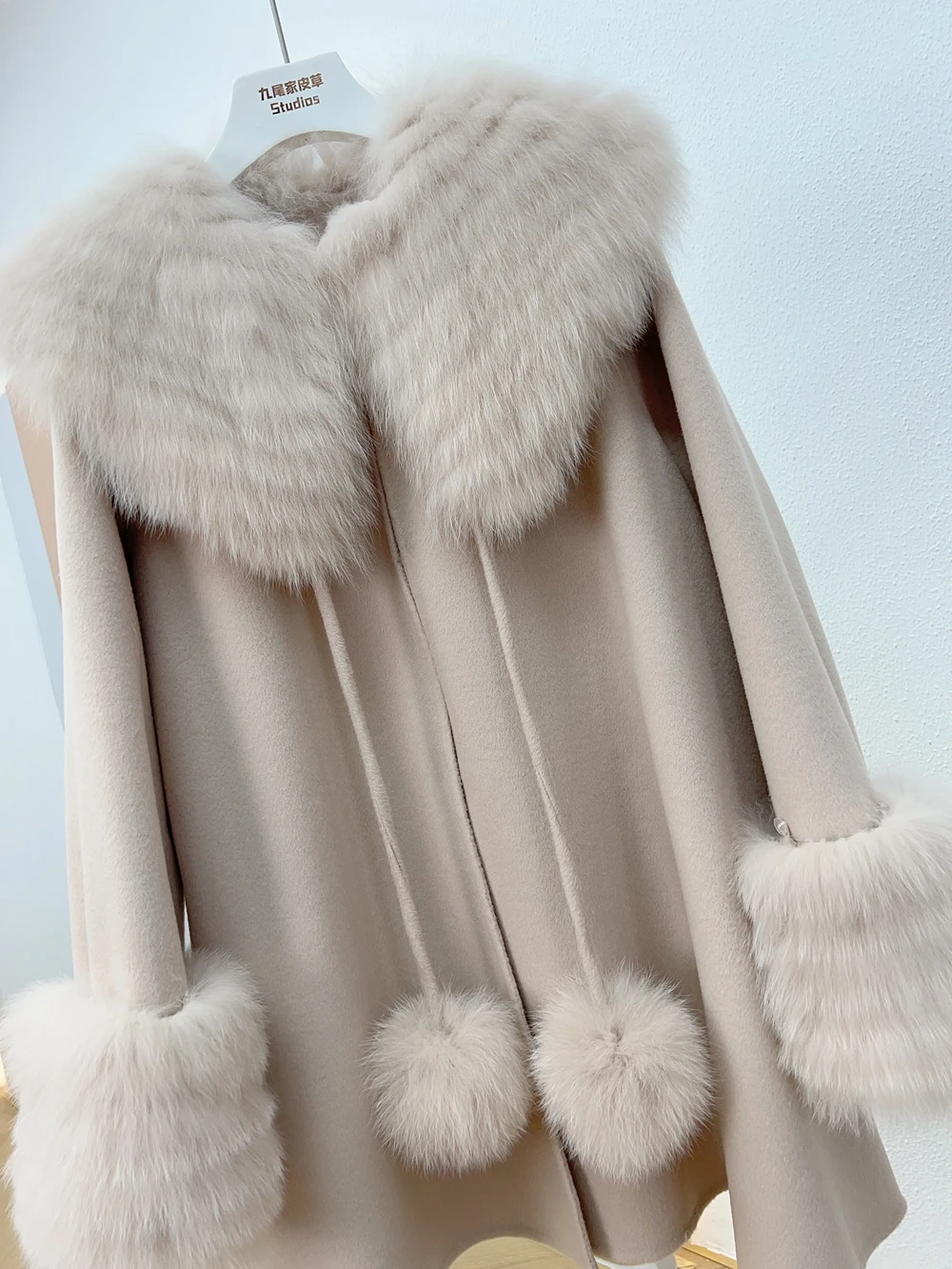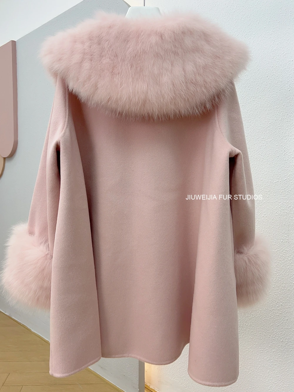 세련된 한국식 여성용 여우 모피 모직 케이프 – 시대를 초월한 우아함과 따뜻함