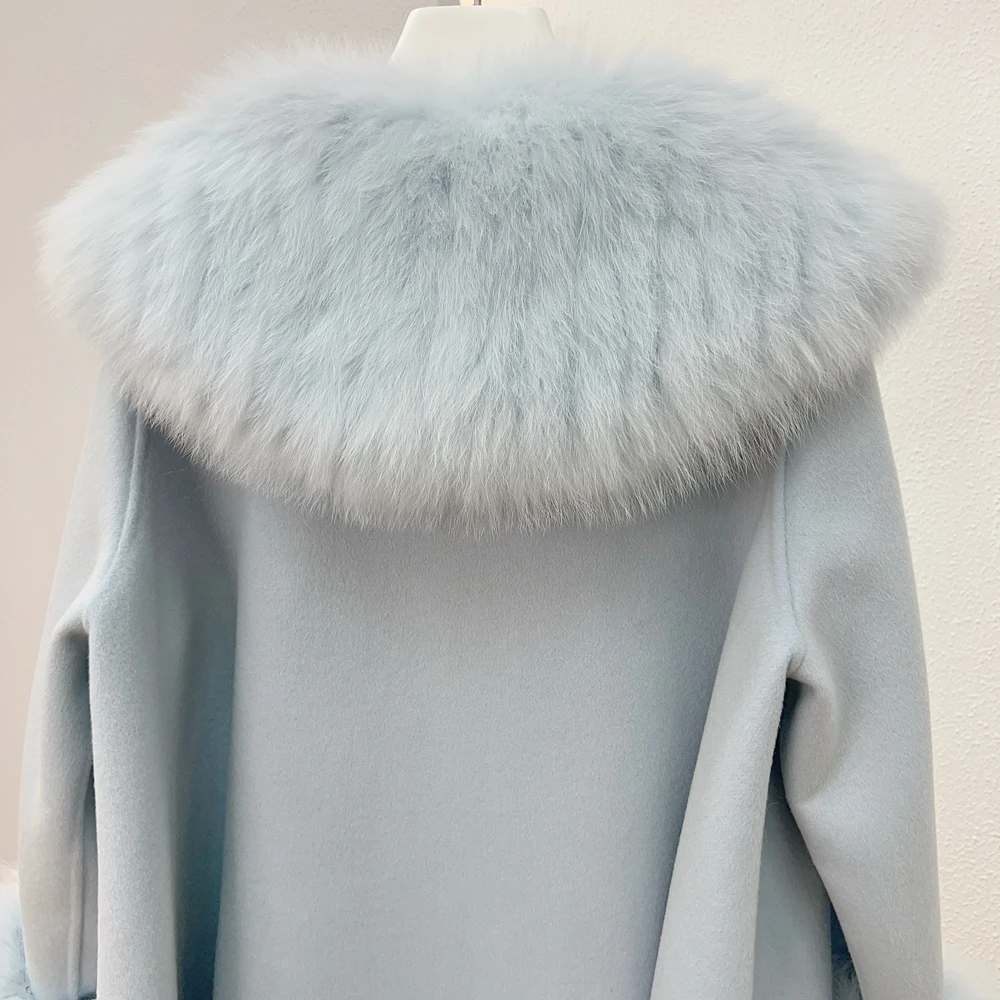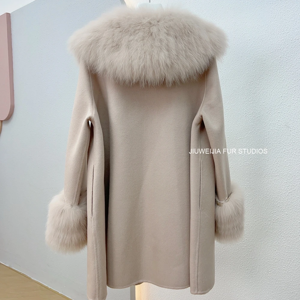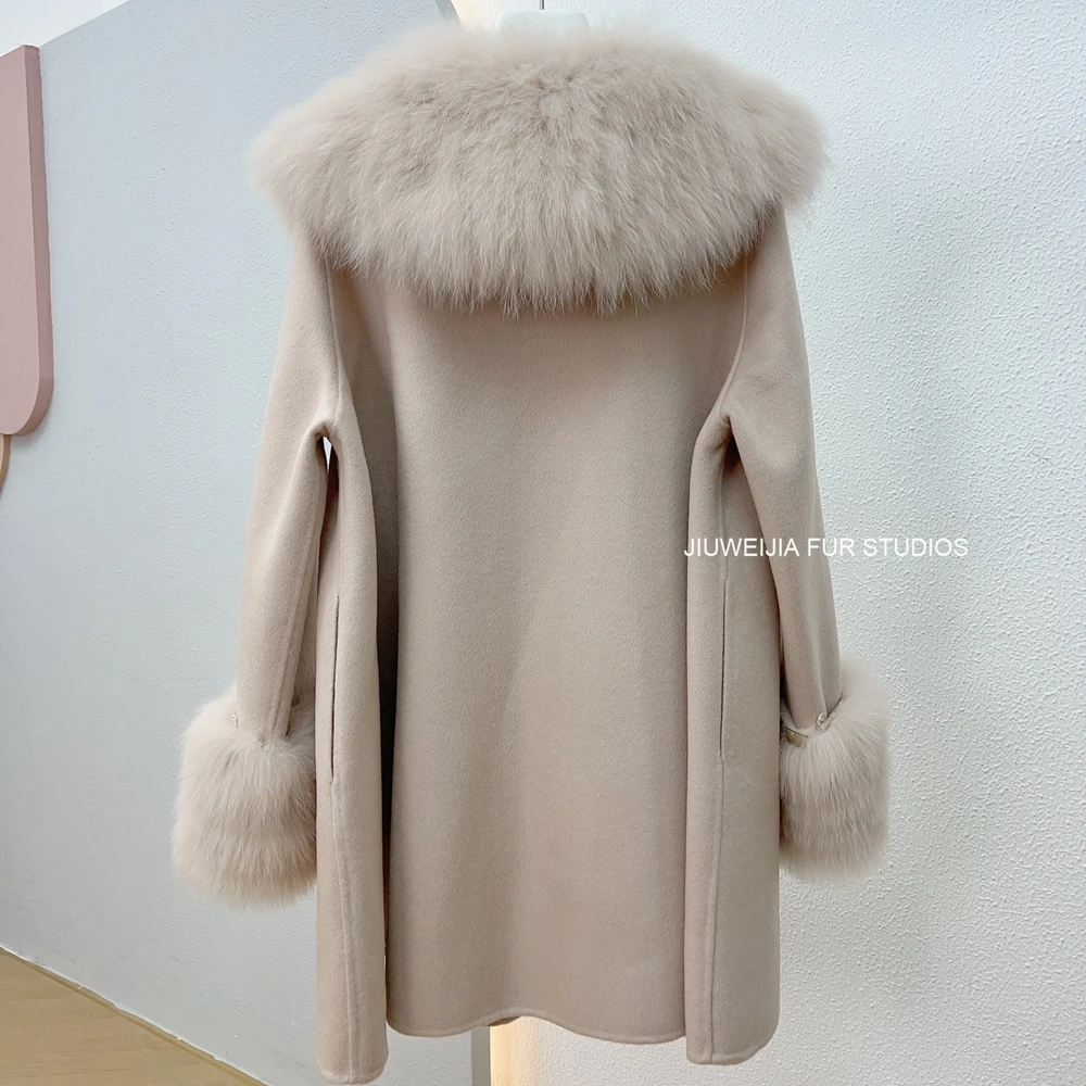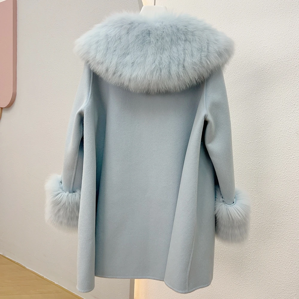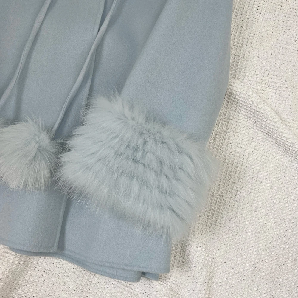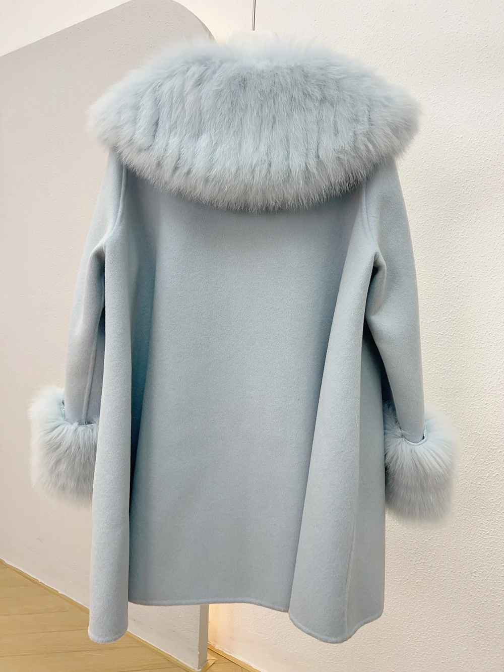 세련된 한국식 여성용 여우 모피 모직 케이프 – 시대를 초월한 우아함과 따뜻함