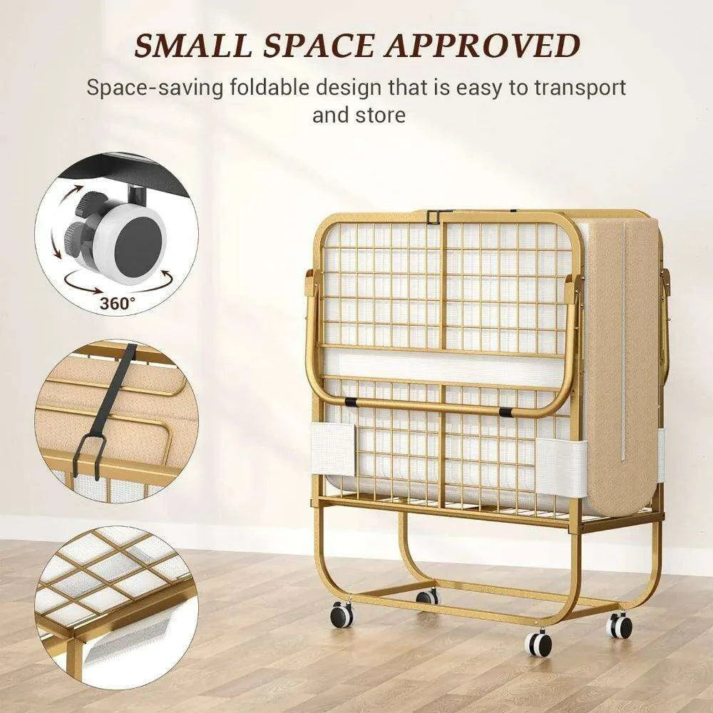 Elegant Gold Folding Sleeper Sofa with Comfort Mattress - 75” x 31”
