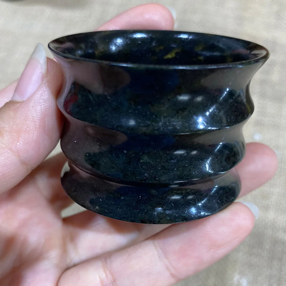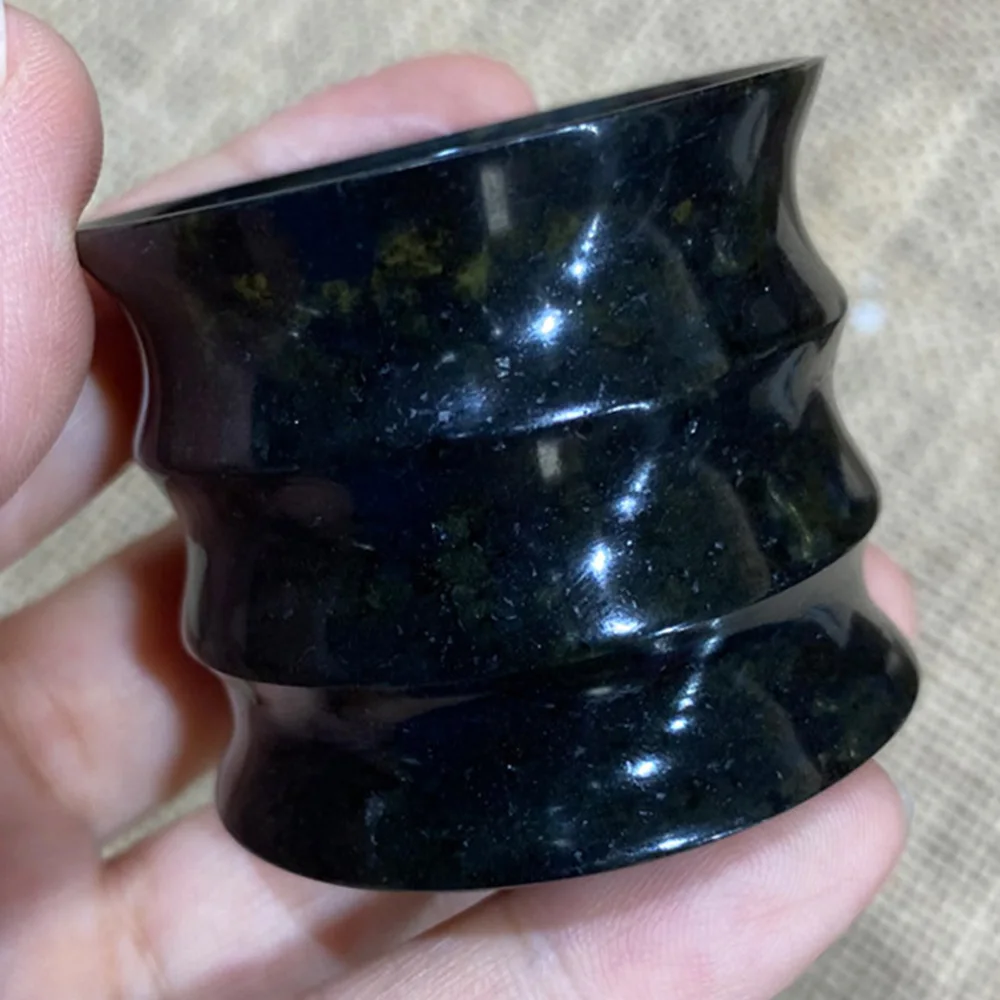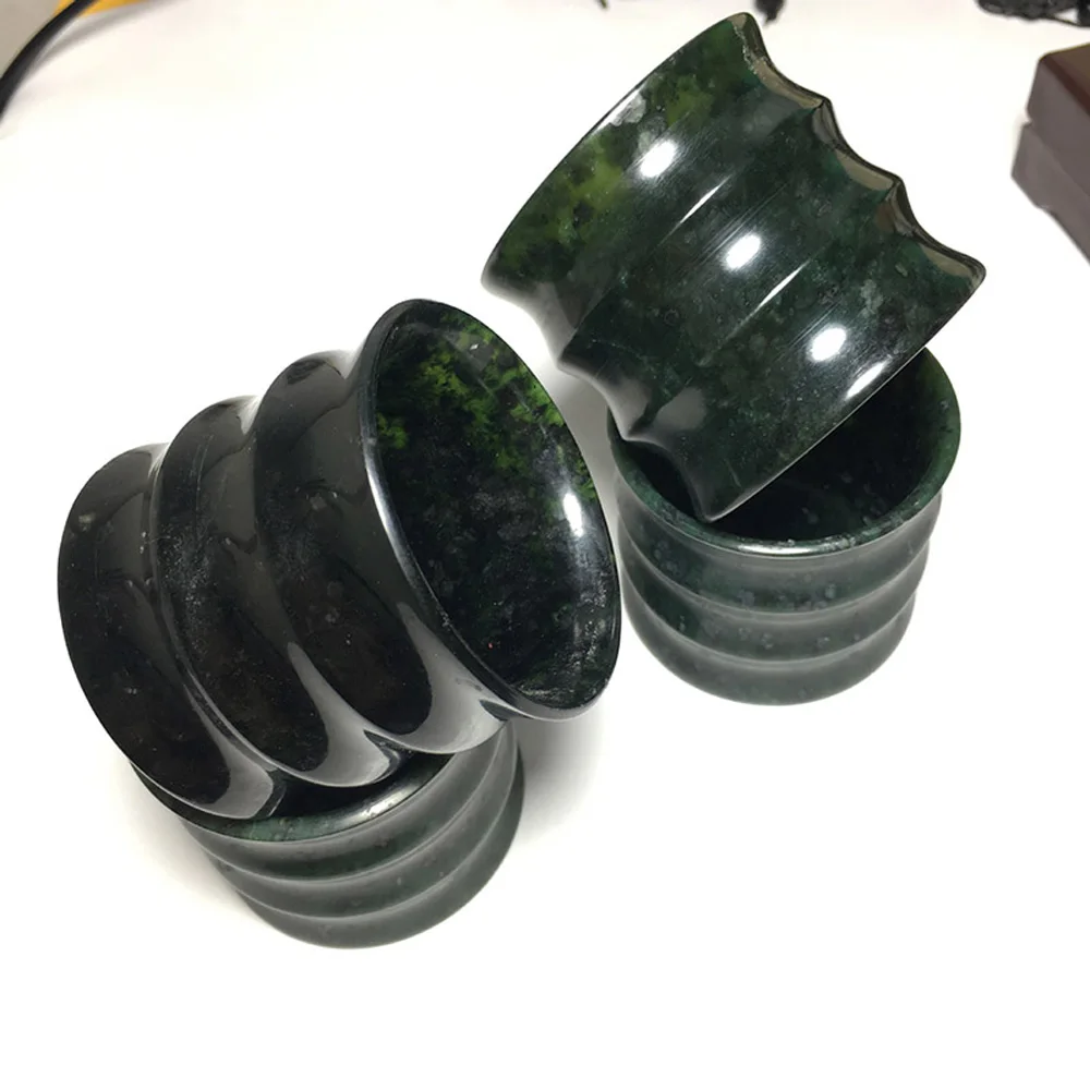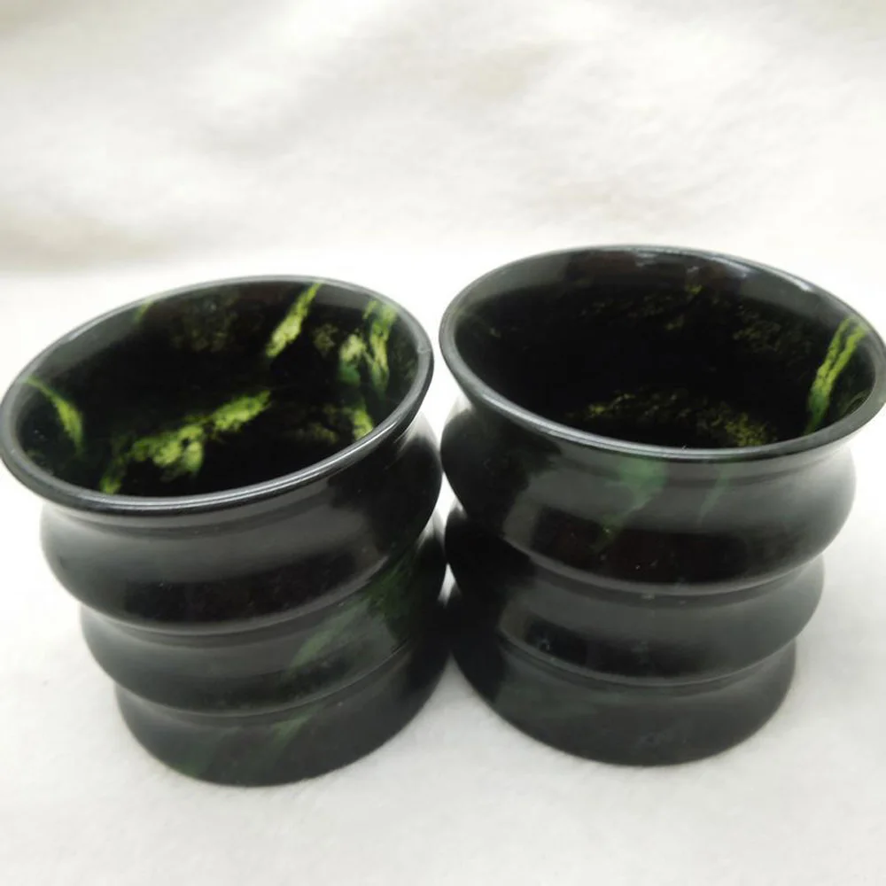 천연 Hetian 옥 차 컵 진짜 중국 신강 연옥 녹색 옥 돌 대나무 쿵푸 찻잔 손으로 조각 한 건강한 Teaset